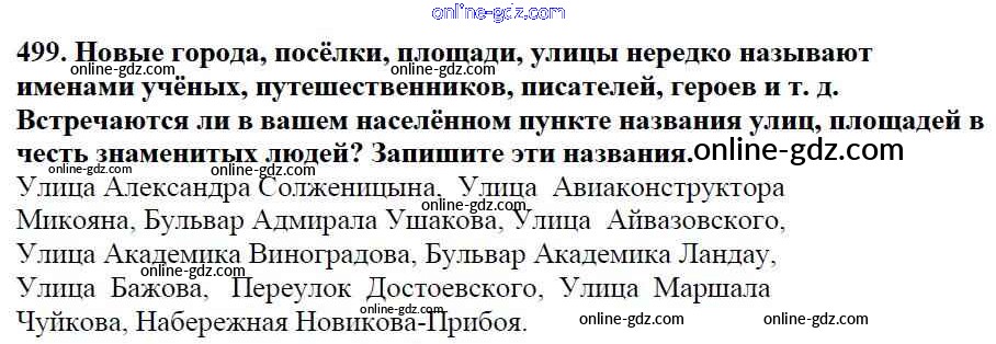 Готовые домашние задания по Русскому языку за 5 класс Учебник Баранов, Ладыженская 2016 - Часть 2. Упражнения 499