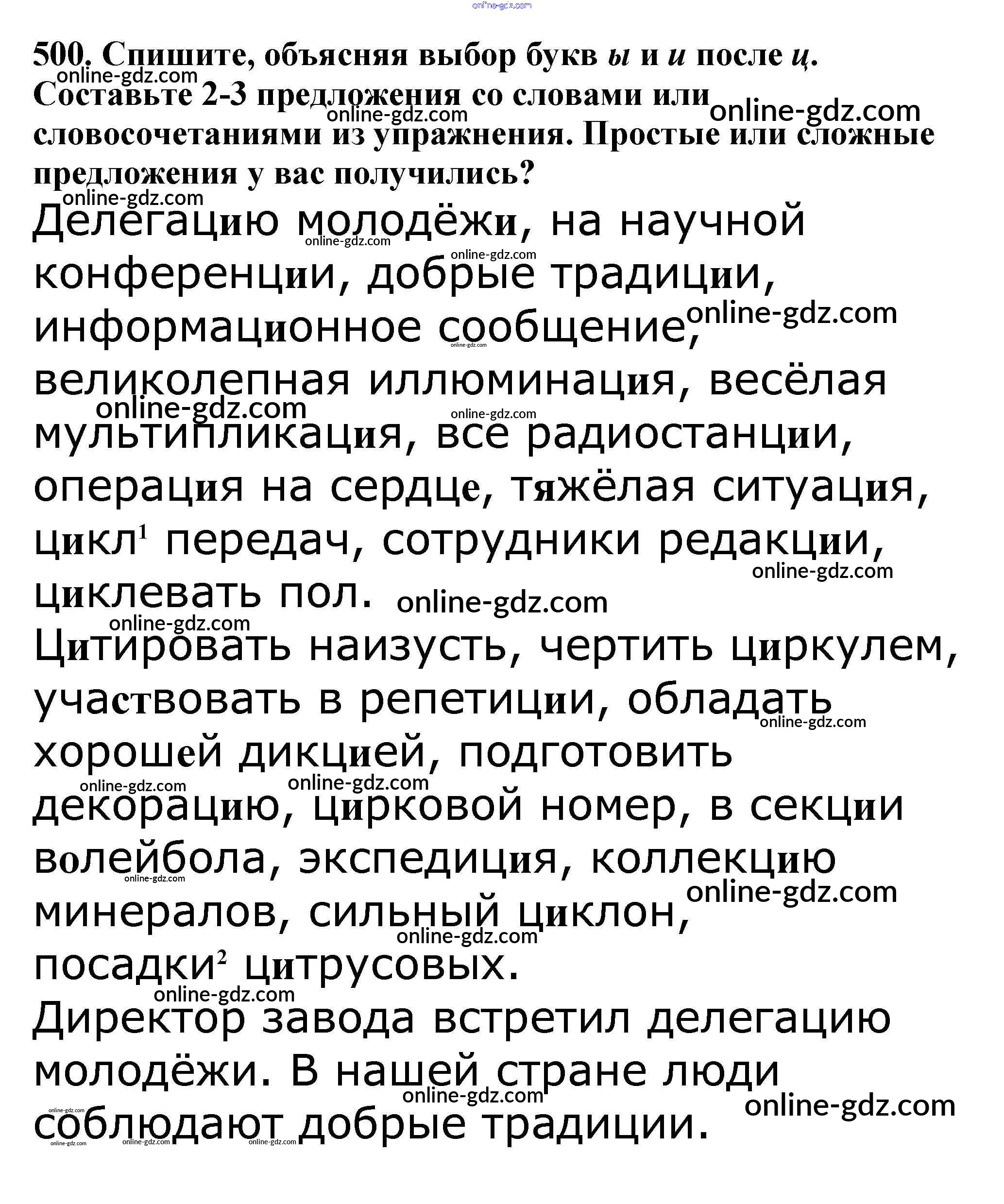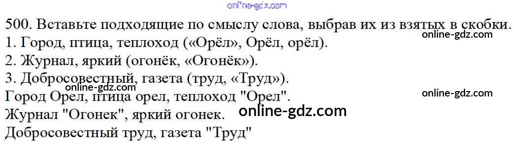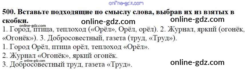 Готовые домашние задания по Русскому языку за 5 класс Учебник Баранов, Ладыженская 2016 - Часть 2. Упражнения 500