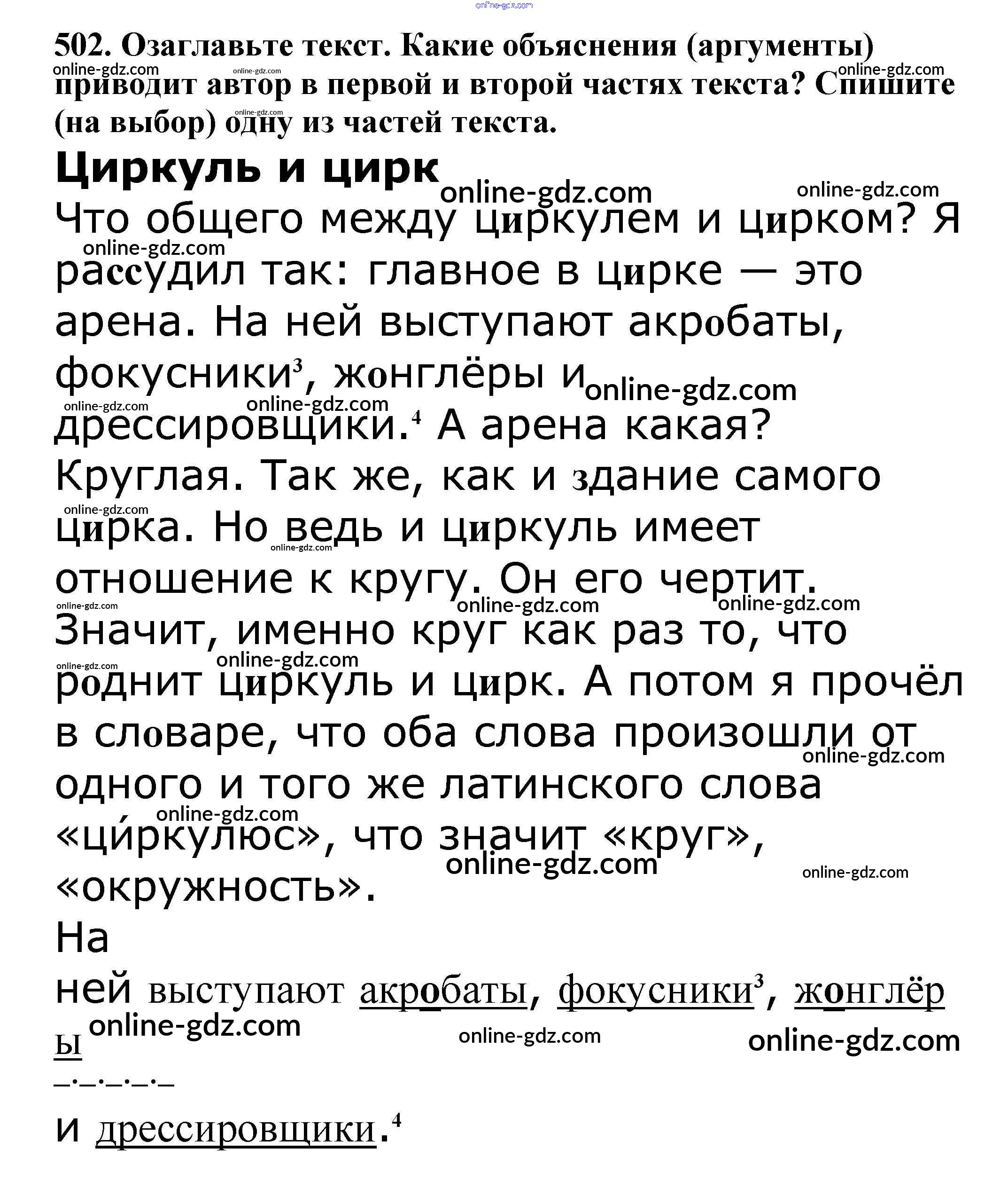 Готовые домашние задания по Русскому языку за 5 класс Учебник Баранов, Ладыженская 2016 - Часть 2. Упражнения 502