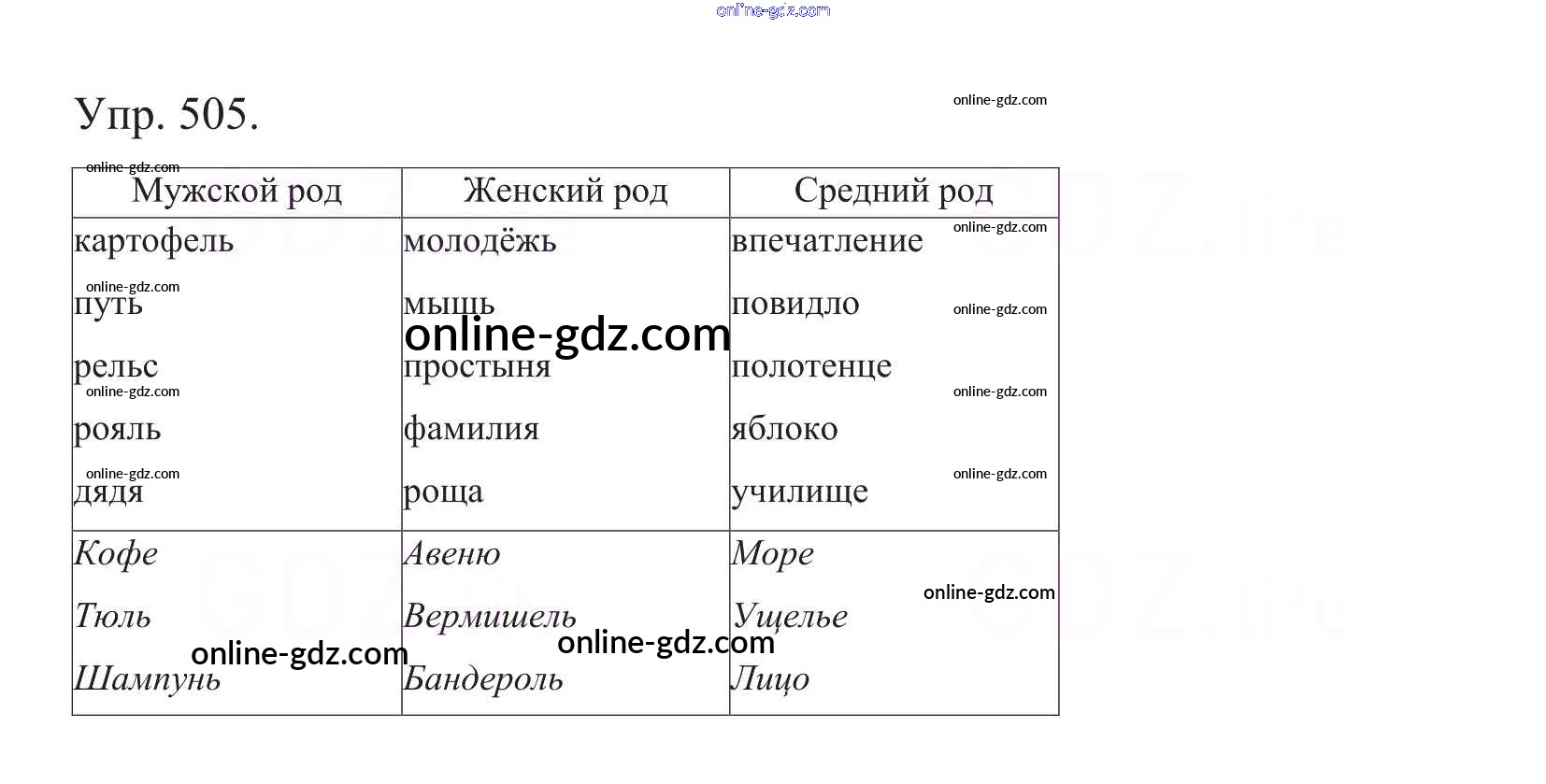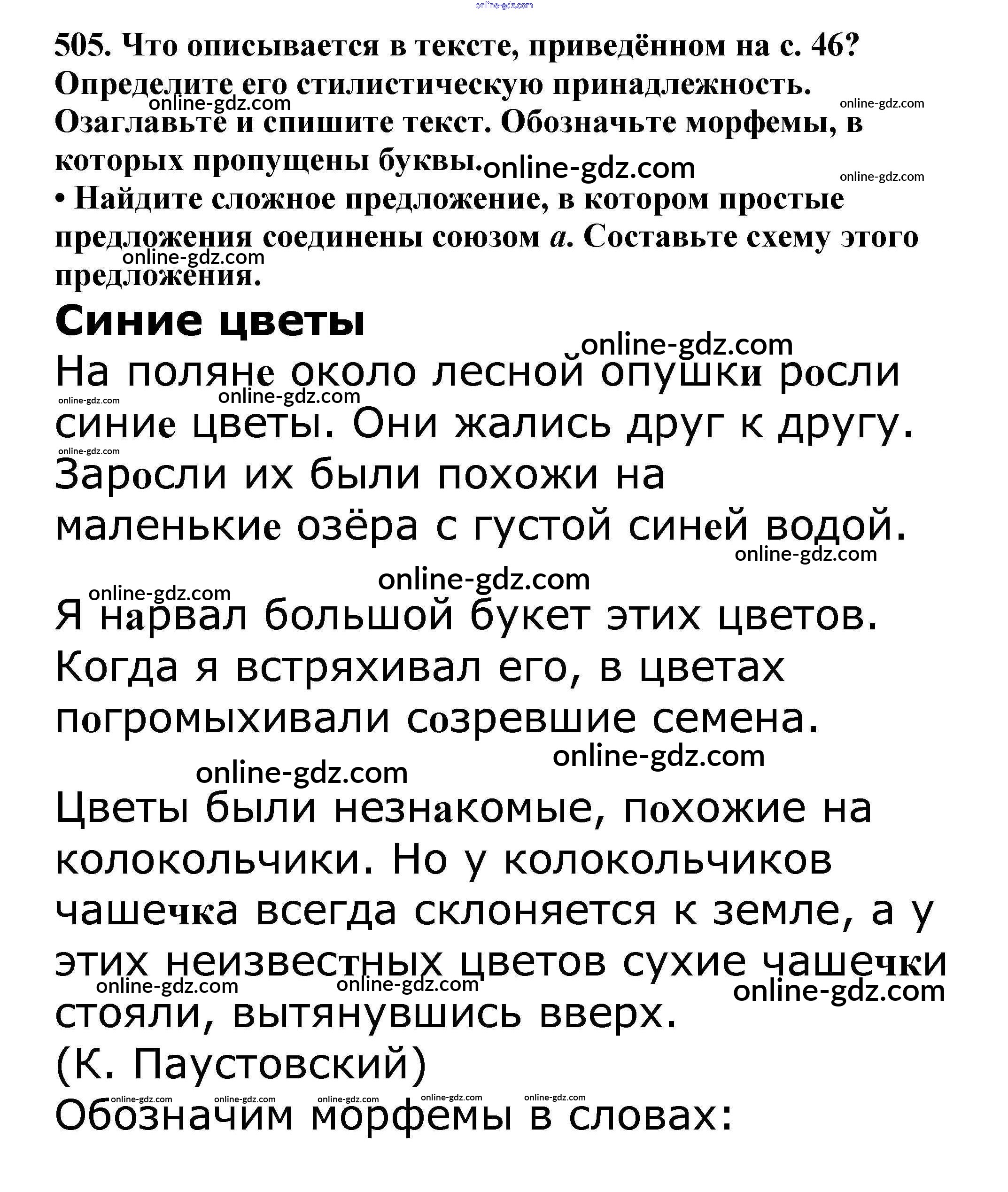 Готовые домашние задания по Русскому языку за 5 класс Учебник Баранов, Ладыженская 2016 - Часть 2. Упражнения 505
