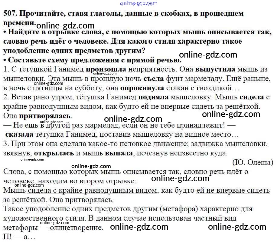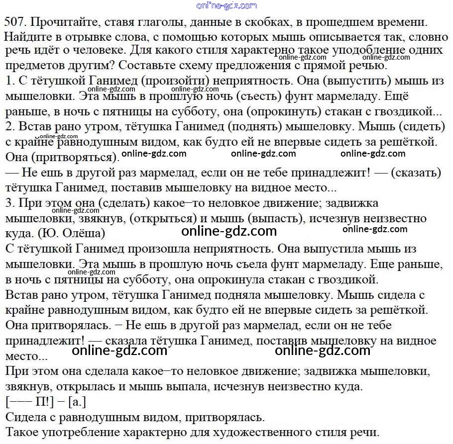 Готовые домашние задания по Русскому языку за 5 класс Учебник Баранов, Ладыженская 2016 - Часть 2. Упражнения 507