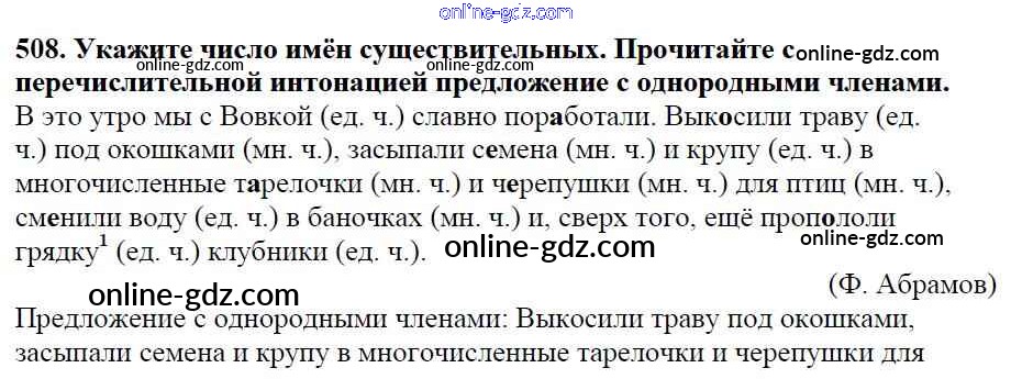 Готовые домашние задания по Русскому языку за 5 класс Учебник Баранов, Ладыженская 2016 - Часть 2. Упражнения 508