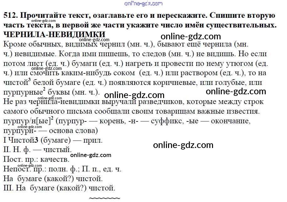 Готовые домашние задания по Русскому языку за 5 класс Учебник Баранов, Ладыженская 2016 - Часть 2. Упражнения 512