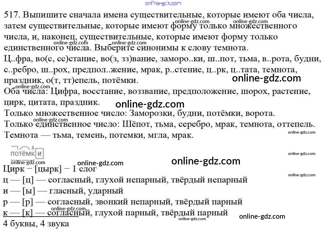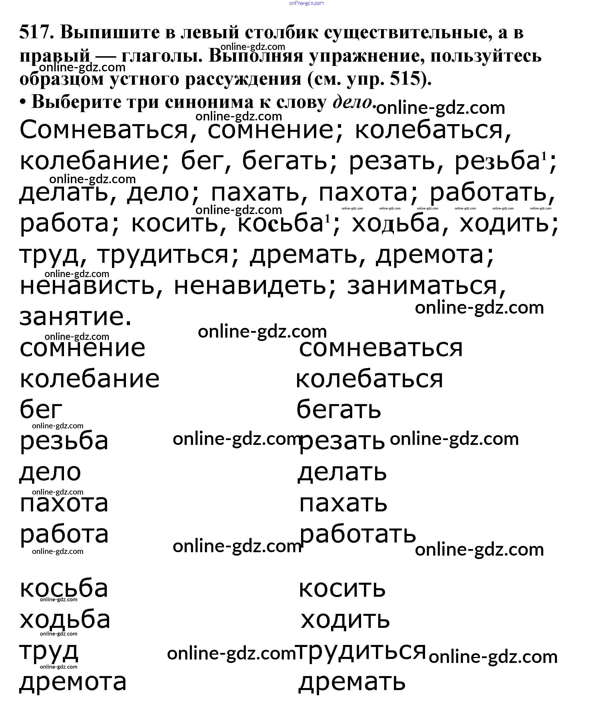Готовые домашние задания по Русскому языку за 5 класс Учебник Баранов, Ладыженская 2016 - Часть 2. Упражнения 517