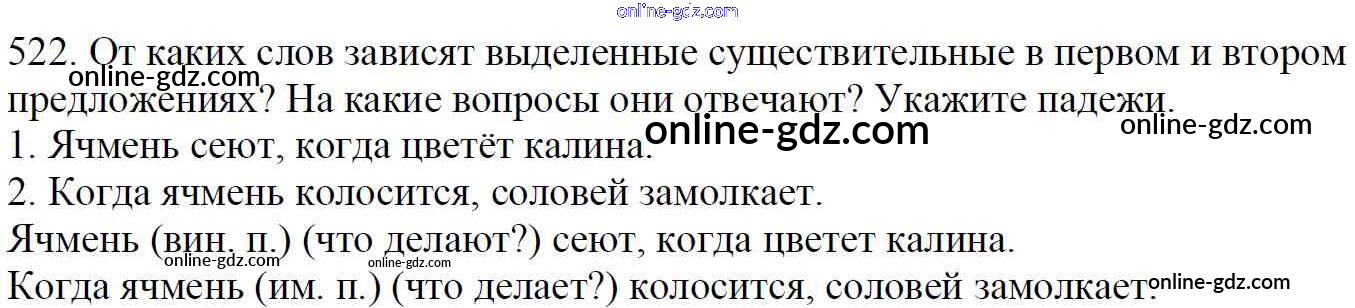 Готовые домашние задания по Русскому языку за 5 класс Учебник Баранов, Ладыженская 2016 - Часть 2. Упражнения 522