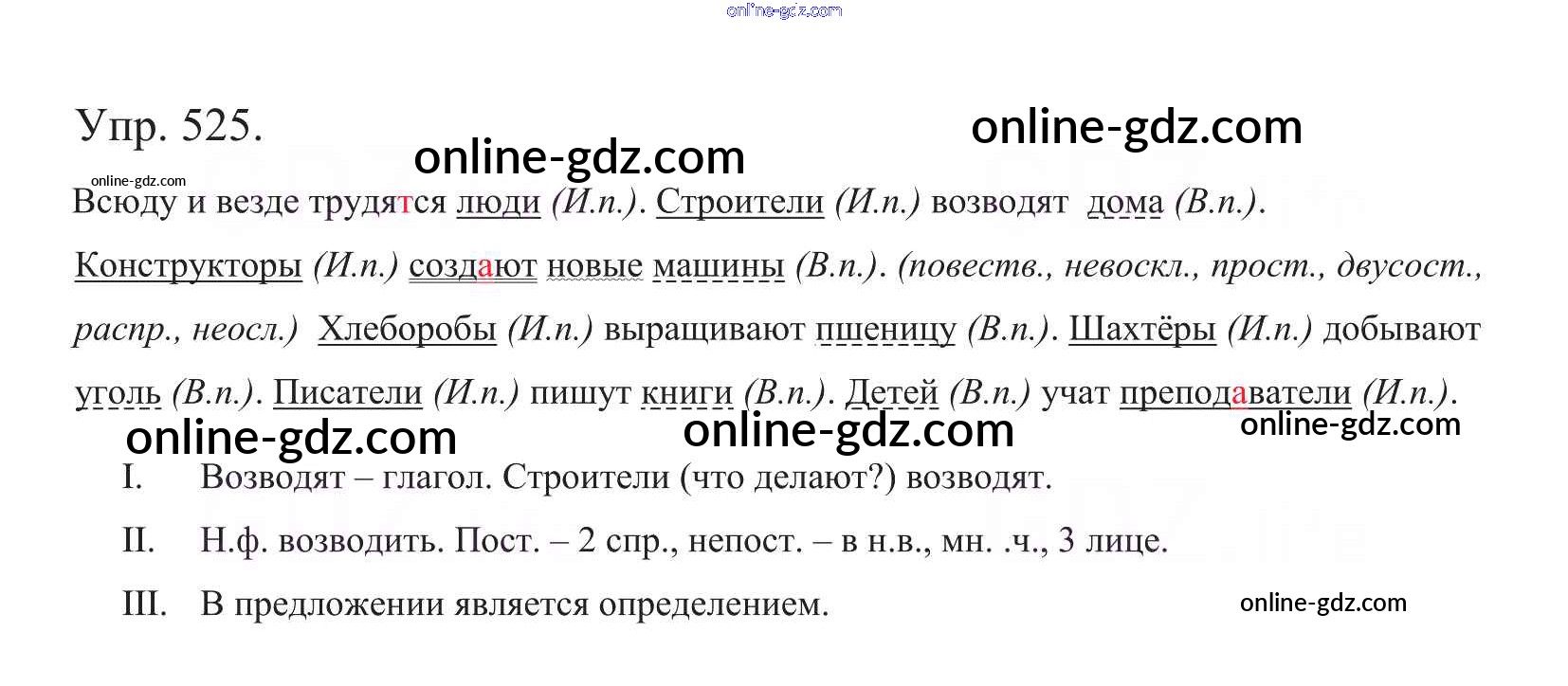 Готовые домашние задания по Русскому языку за 5 класс Учебник Баранов, Ладыженская 2016 - Часть 2. Упражнения 525