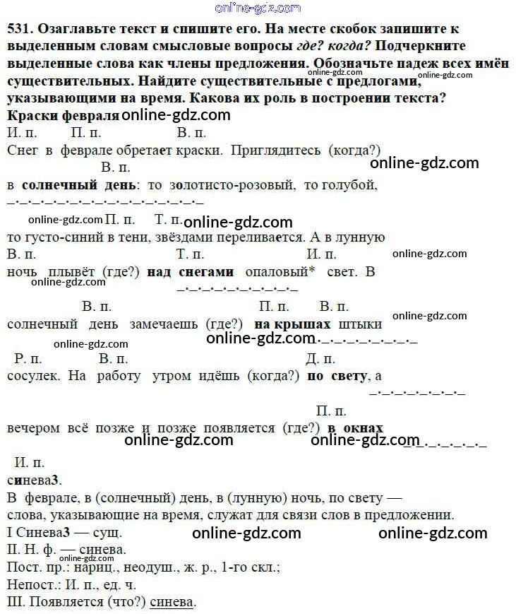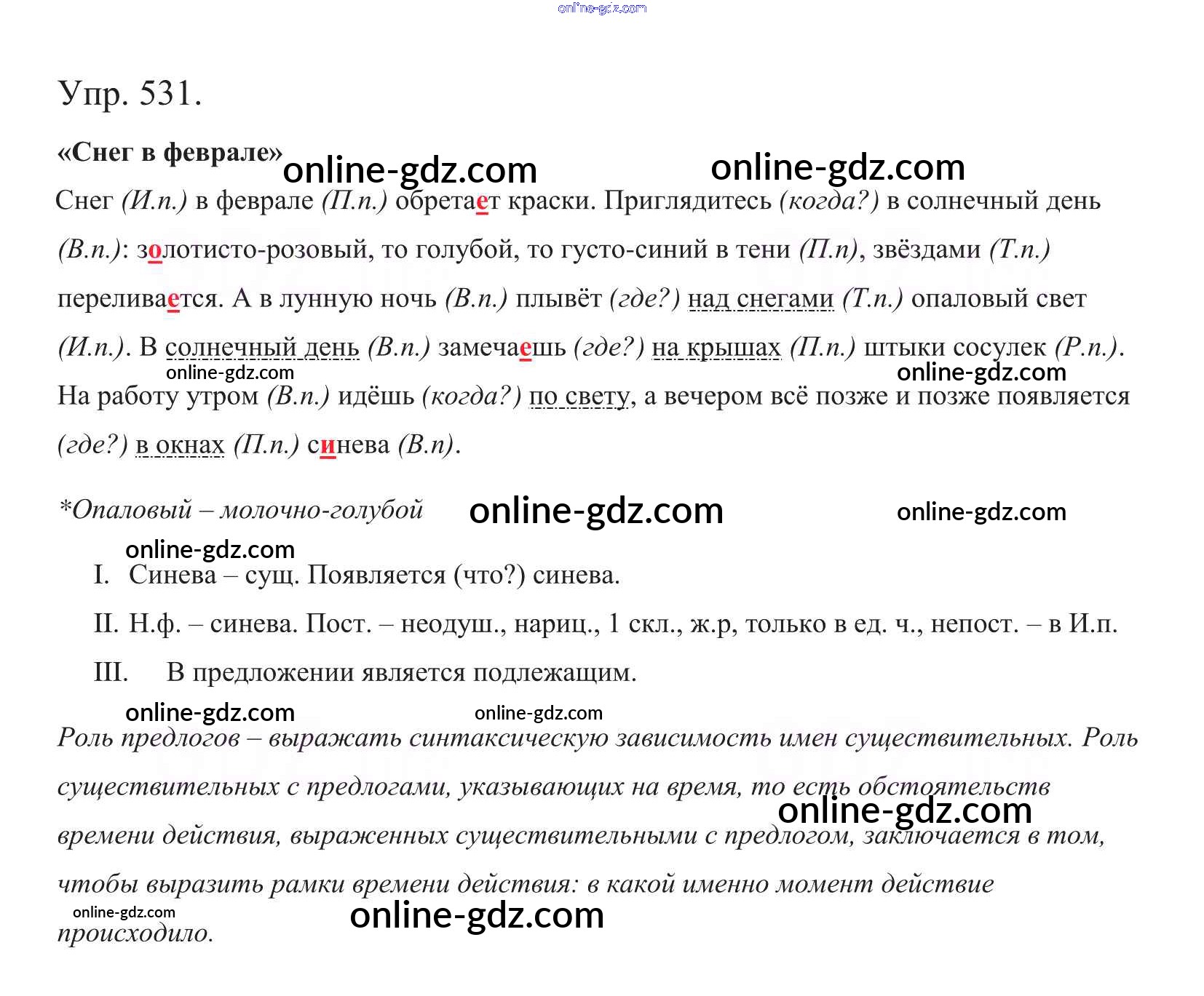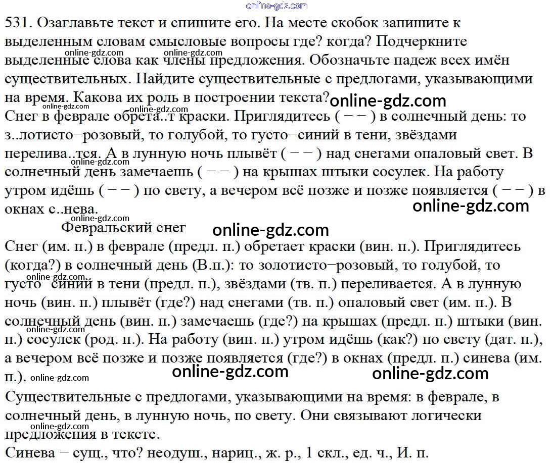 Готовые домашние задания по Русскому языку за 5 класс Учебник Баранов, Ладыженская 2016 - Часть 2. Упражнения 531