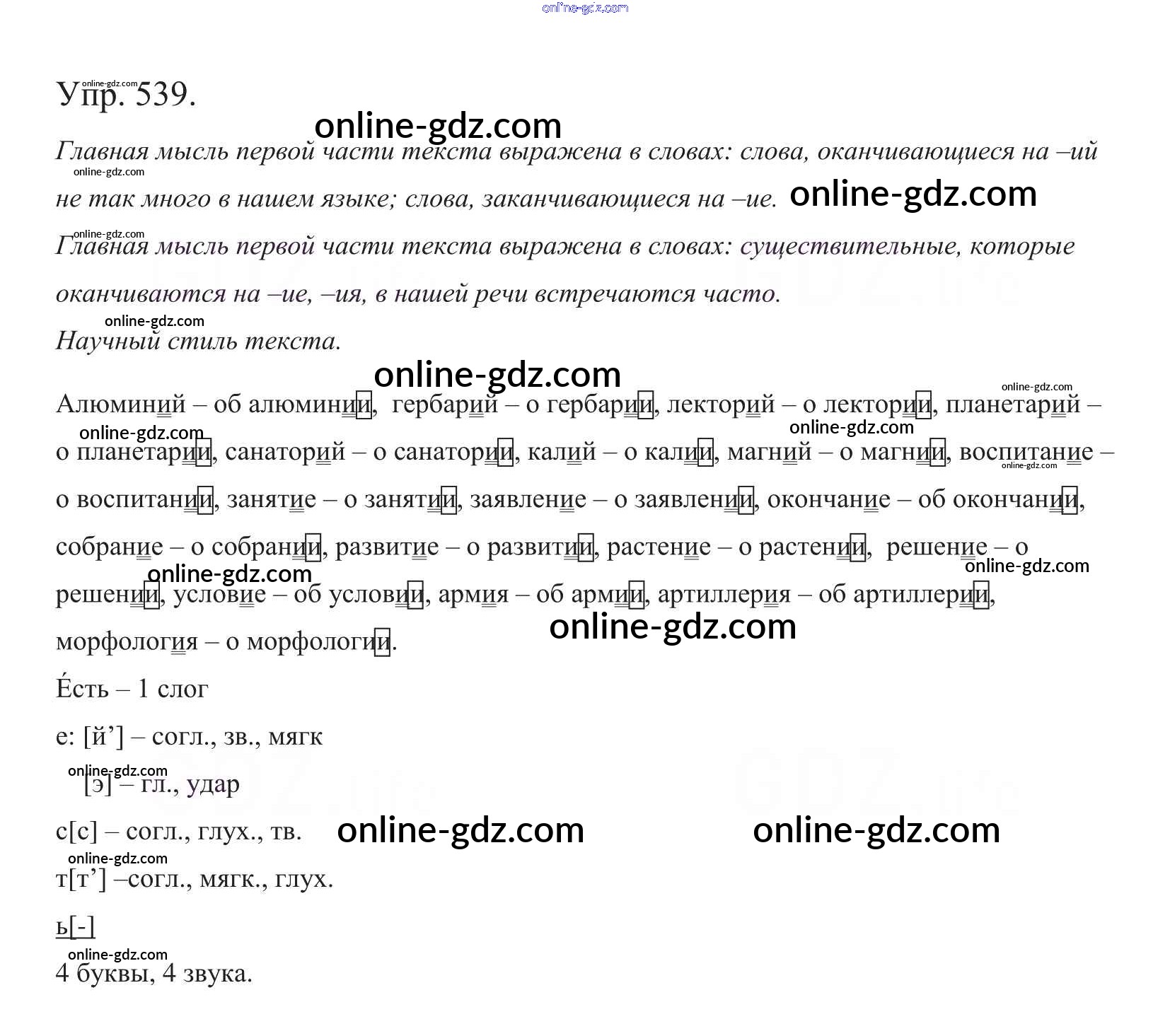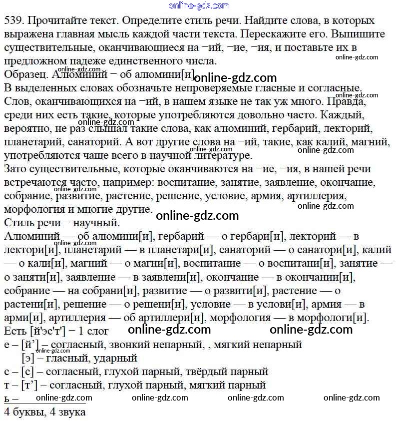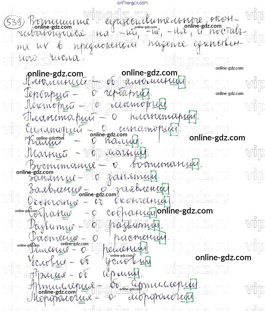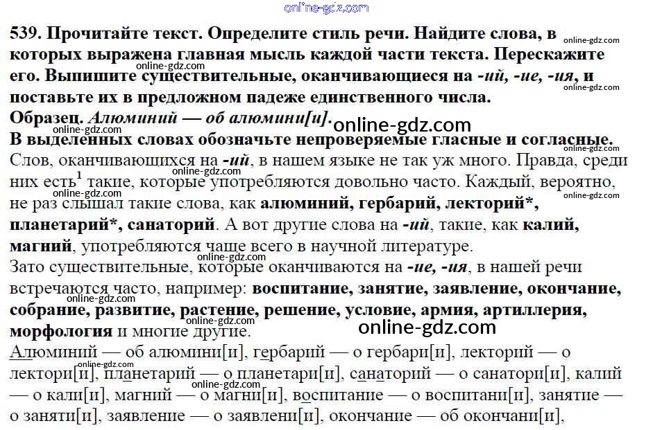 Готовые домашние задания по Русскому языку за 5 класс Учебник Баранов, Ладыженская 2016 - Часть 2. Упражнения 539