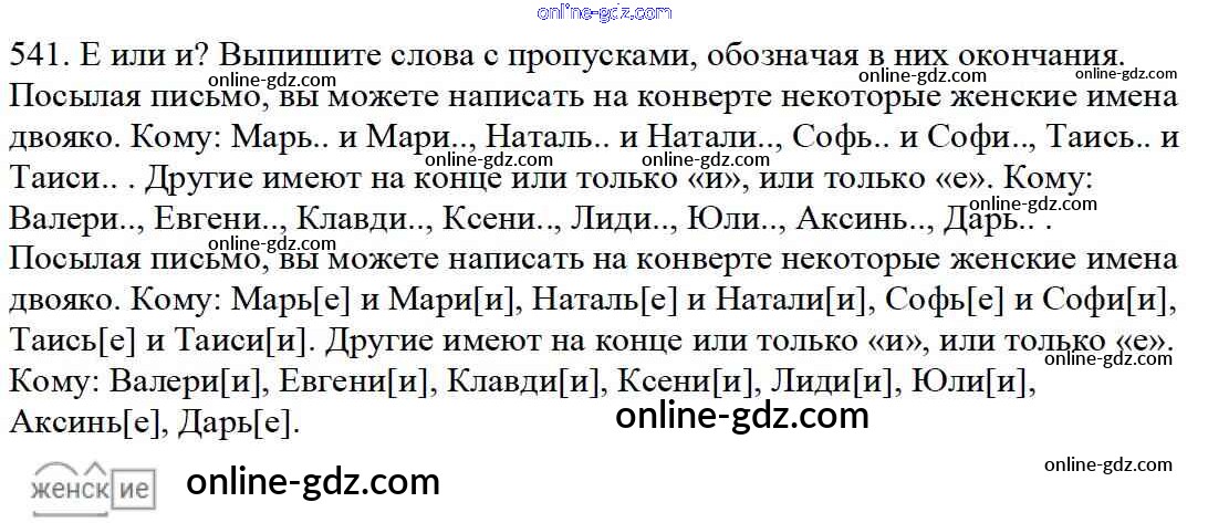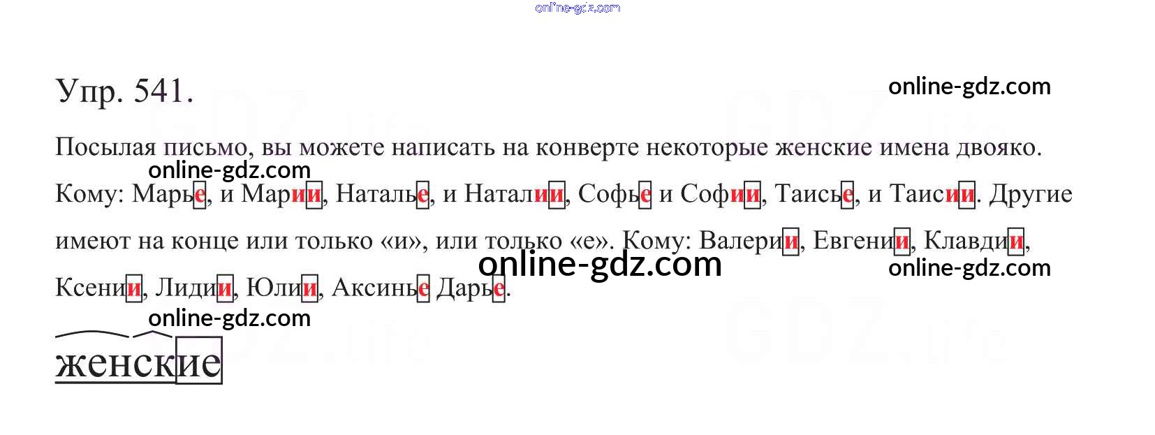 Готовые домашние задания по Русскому языку за 5 класс Учебник Баранов, Ладыженская 2016 - Часть 2. Упражнения 541