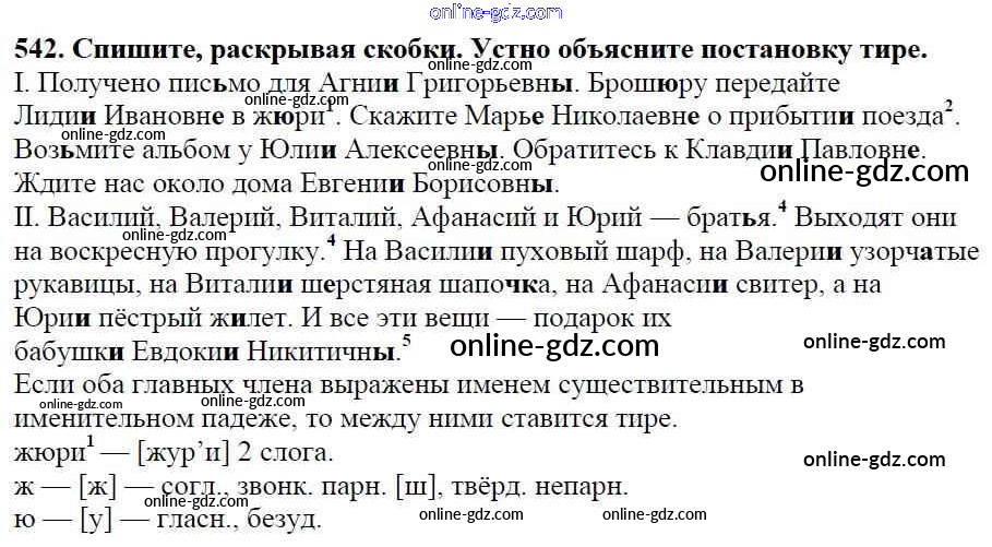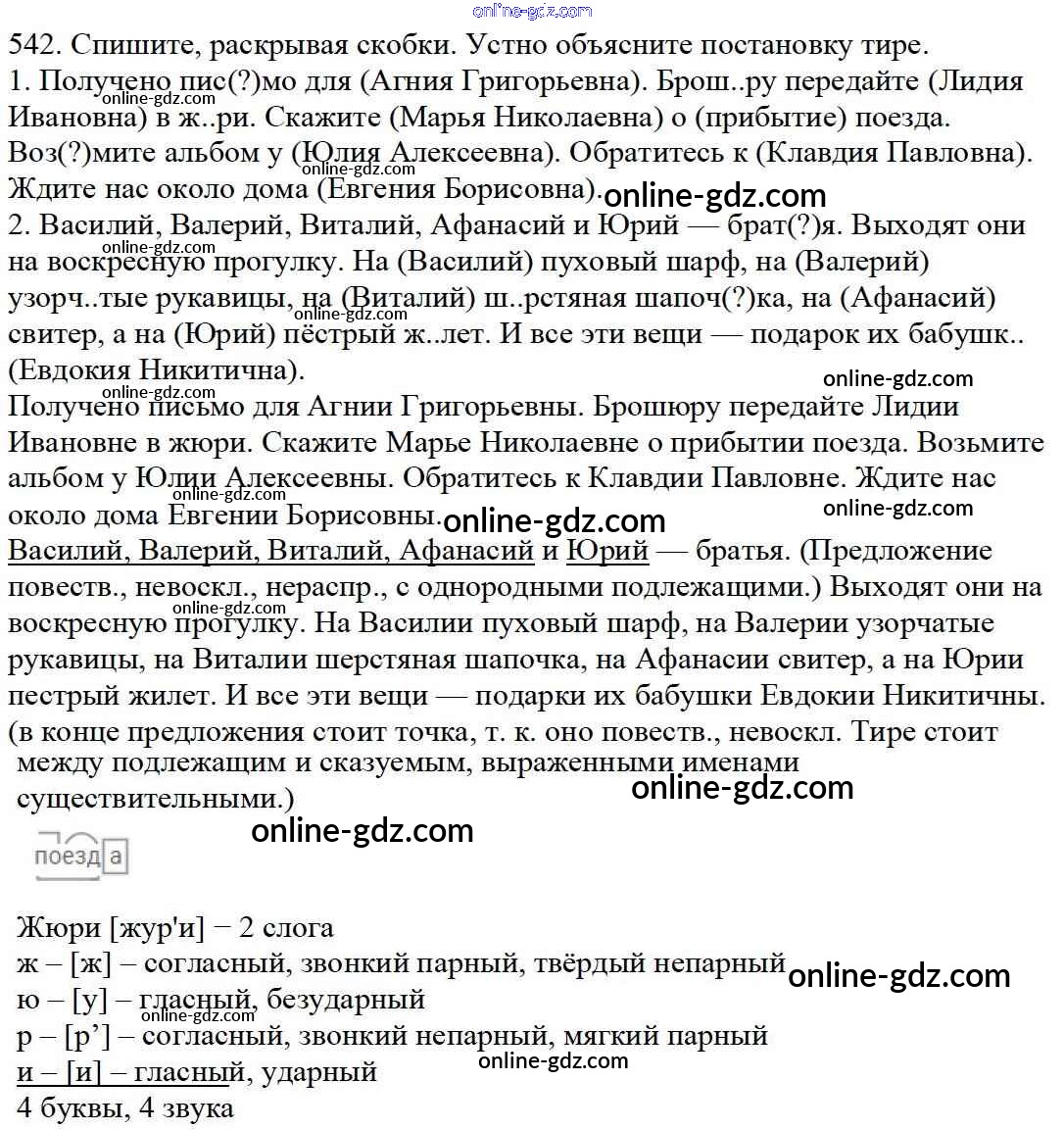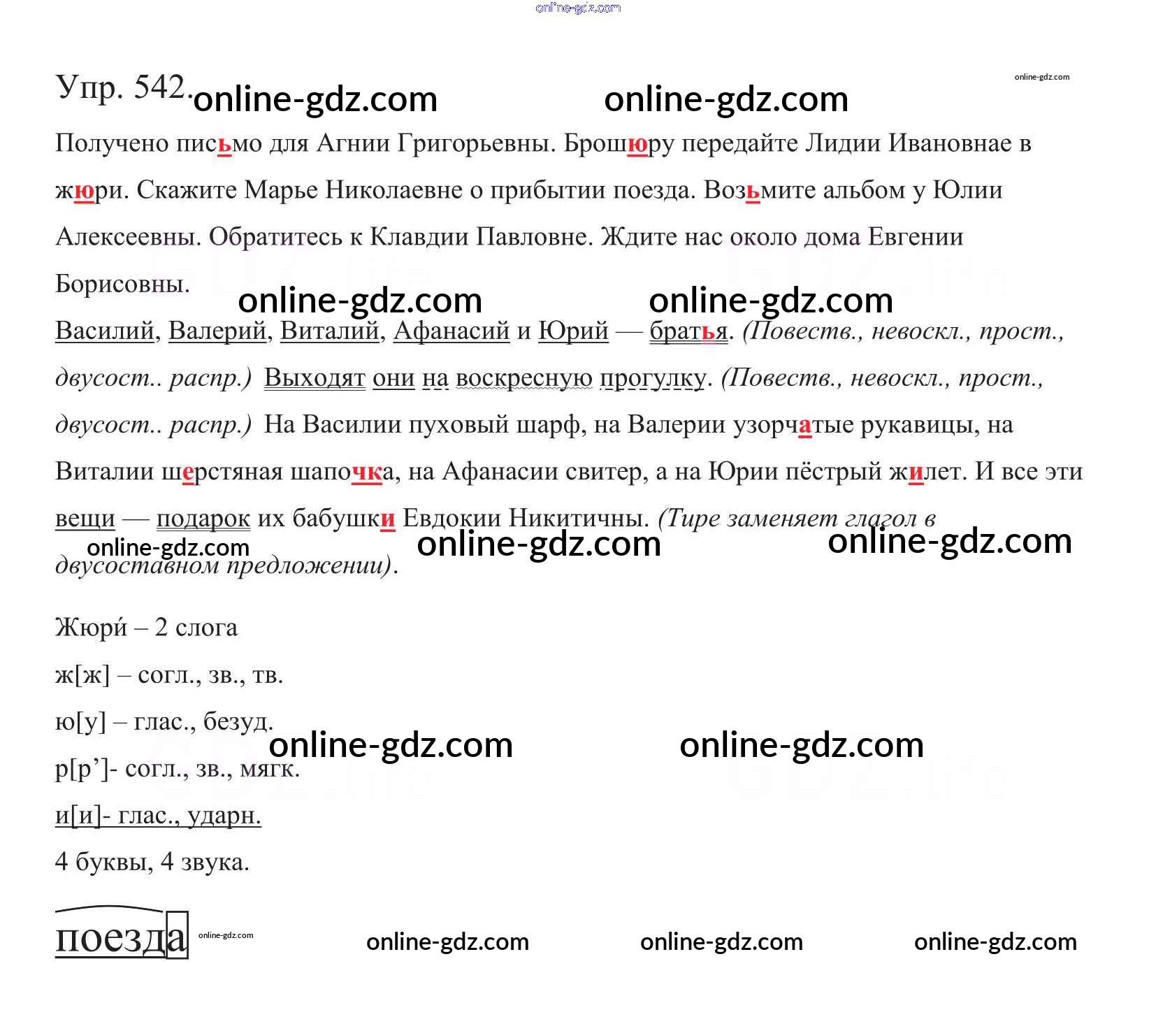 Готовые домашние задания по Русскому языку за 5 класс Учебник Баранов, Ладыженская 2016 - Часть 2. Упражнения 542