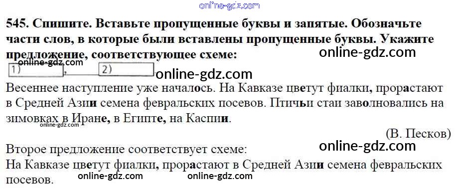 Готовые домашние задания по Русскому языку за 5 класс Учебник Баранов, Ладыженская 2016 - Часть 2. Упражнения 545