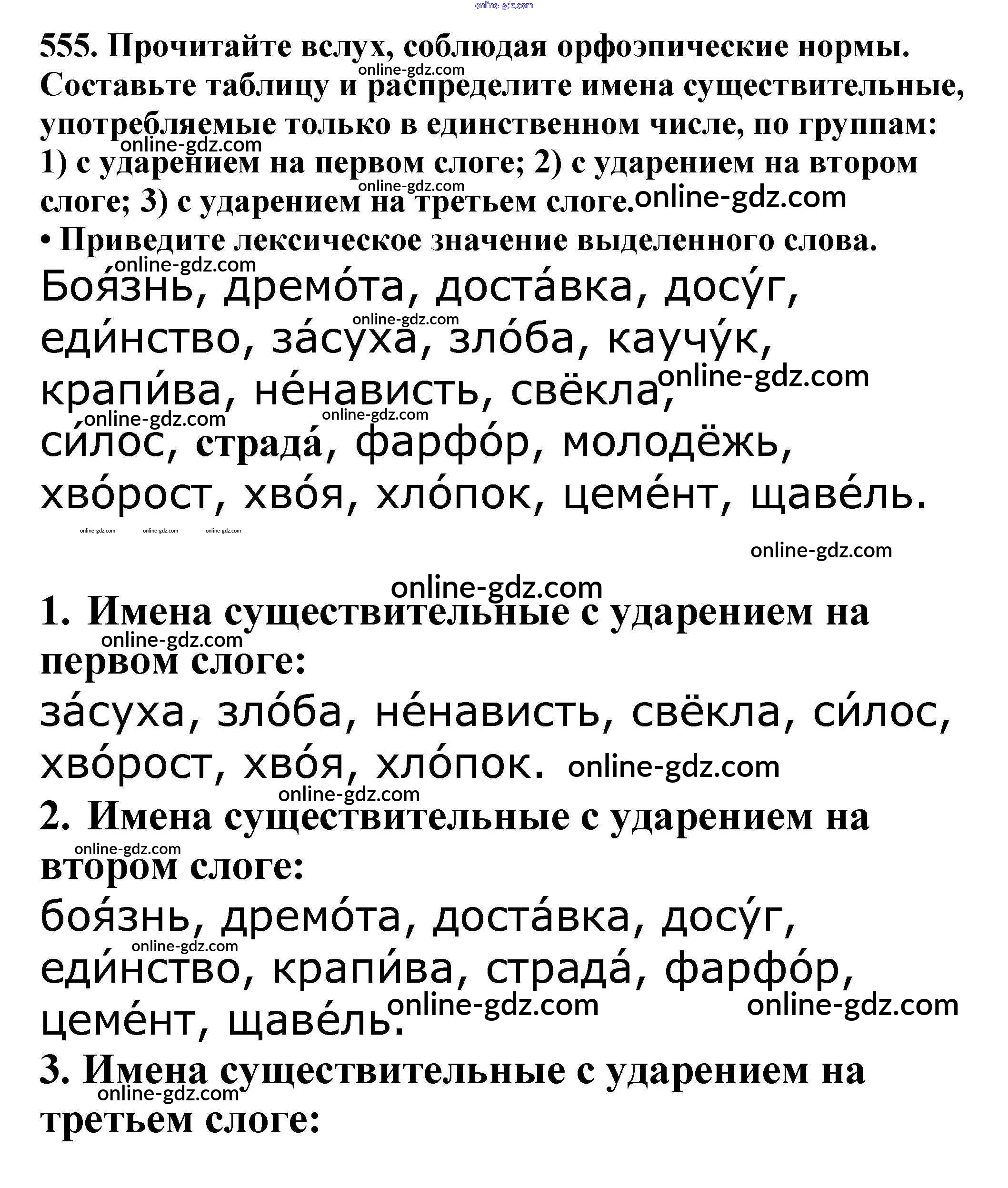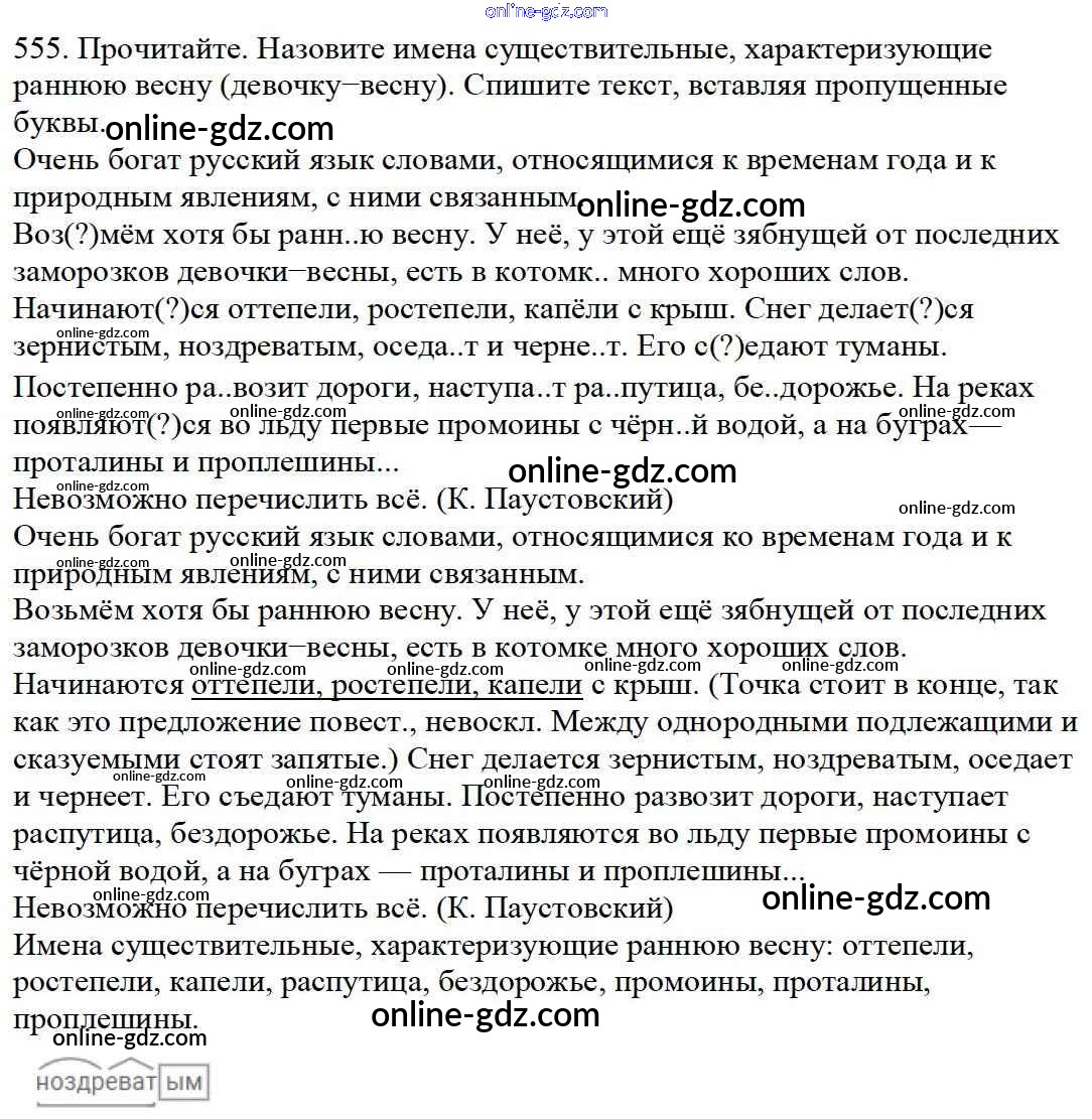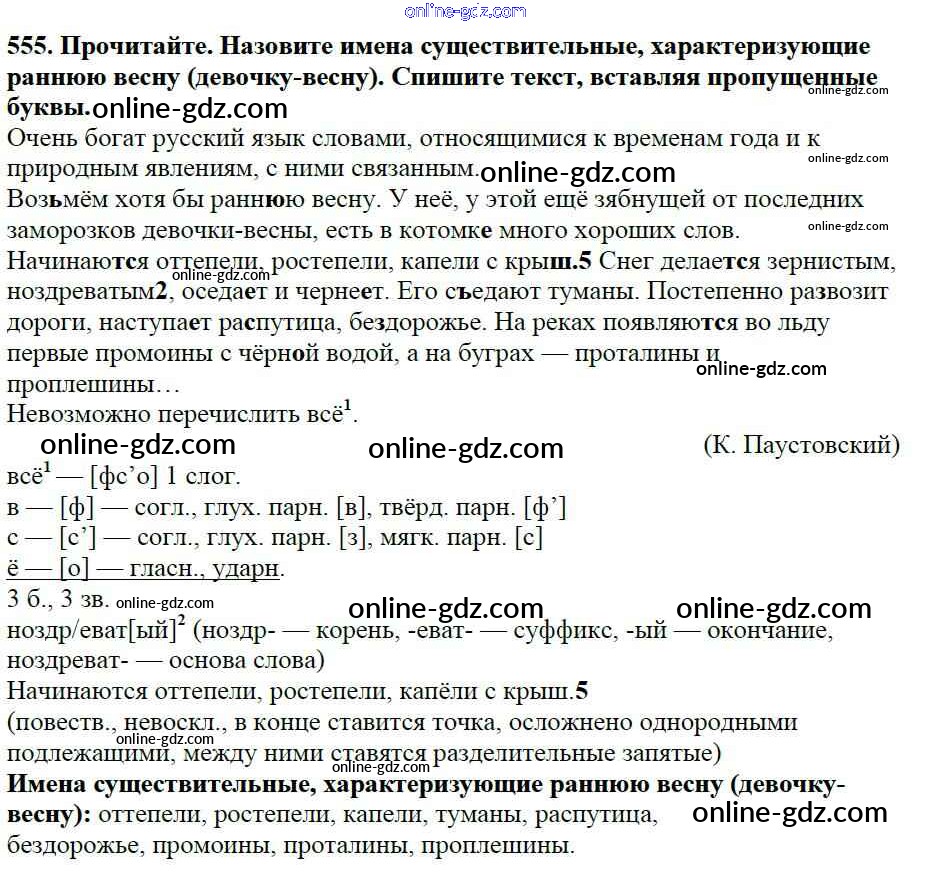 Готовые домашние задания по Русскому языку за 5 класс Учебник Баранов, Ладыженская 2016 - Часть 2. Упражнения 555