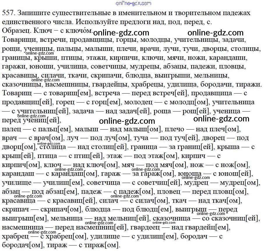 Готовые домашние задания по Русскому языку за 5 класс Учебник Баранов, Ладыженская 2016 - Часть 2. Упражнения 557