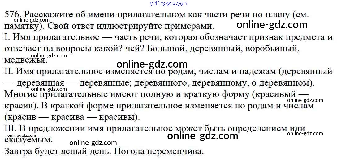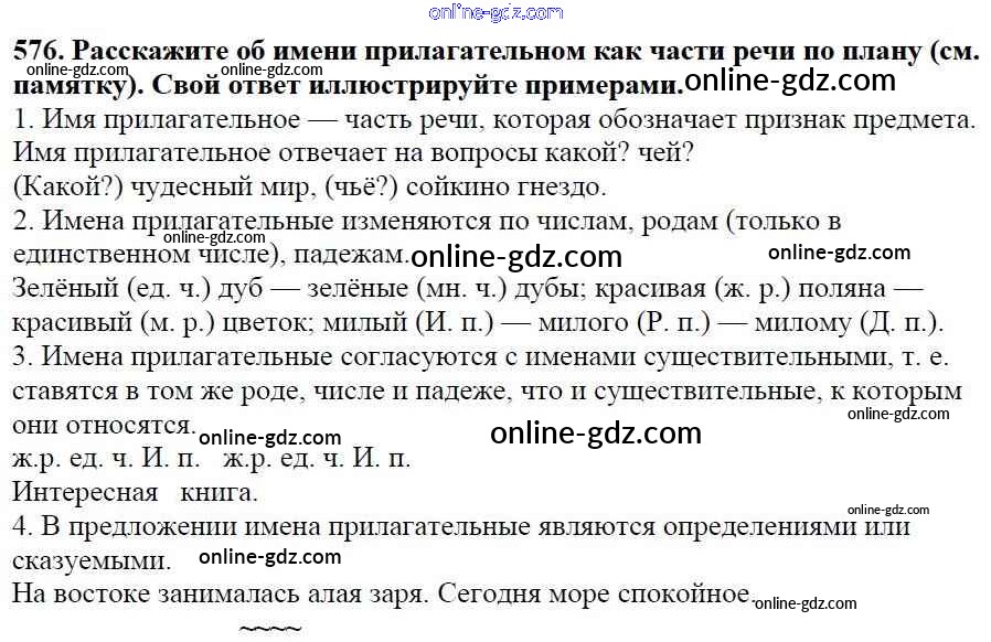 Готовые домашние задания по Русскому языку за 5 класс Учебник Баранов, Ладыженская 2016 - Часть 2. Упражнения 576