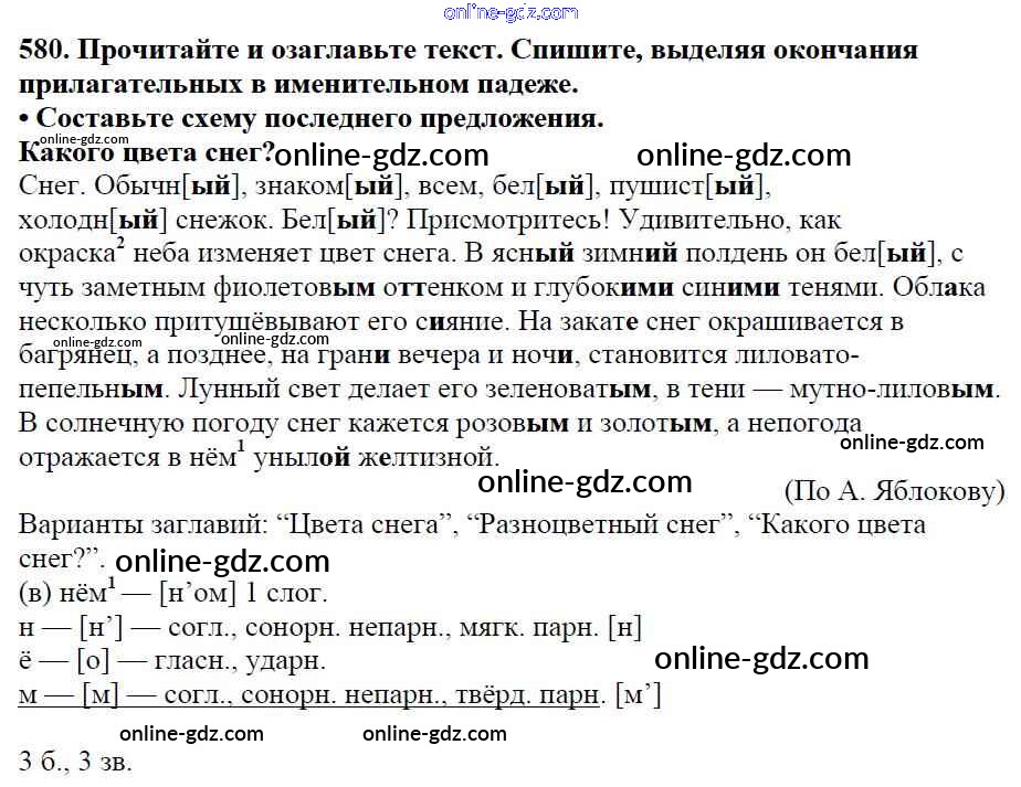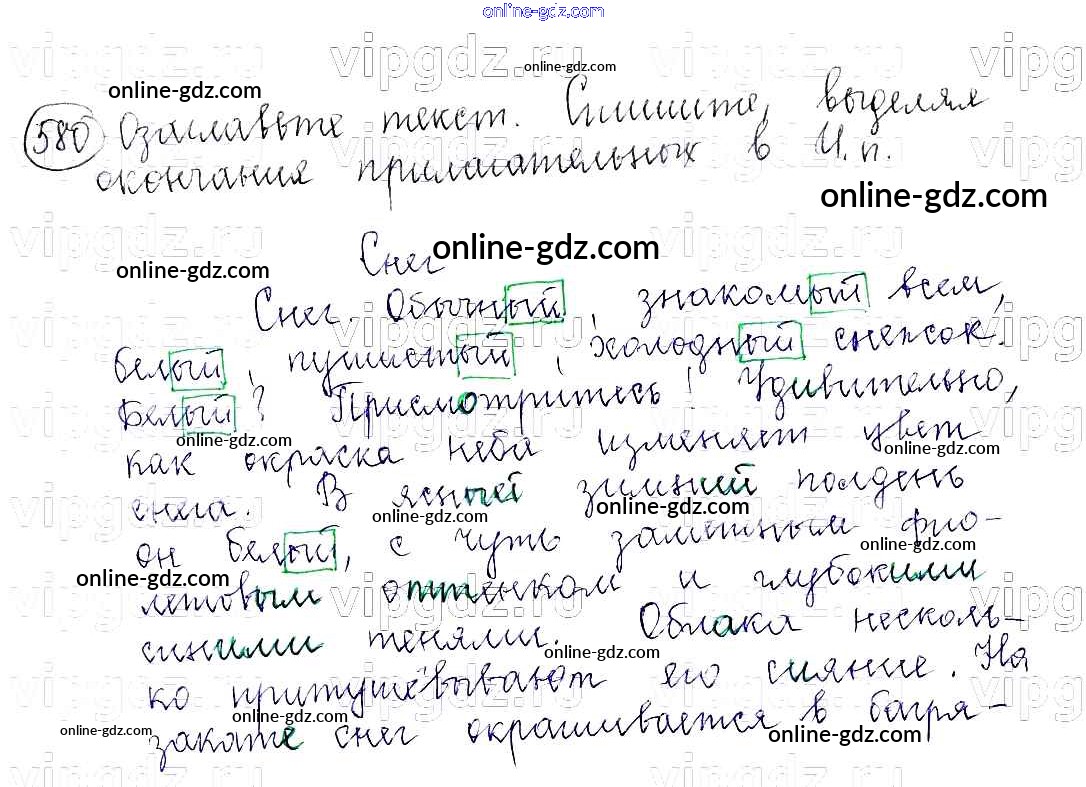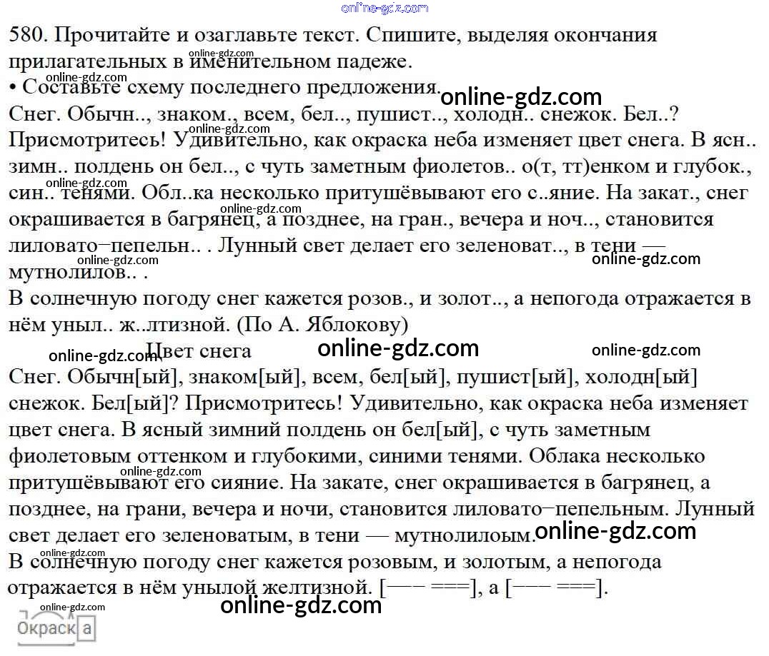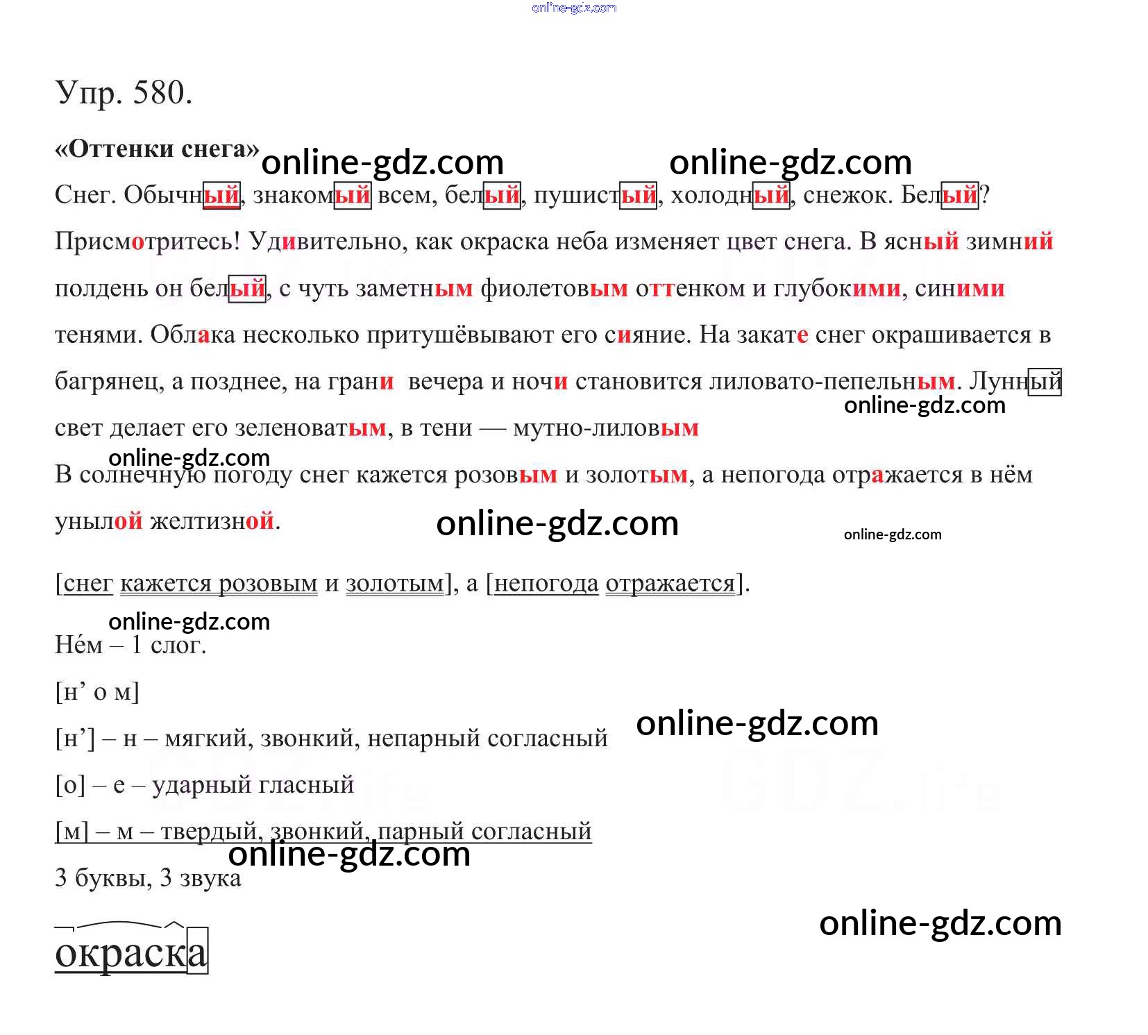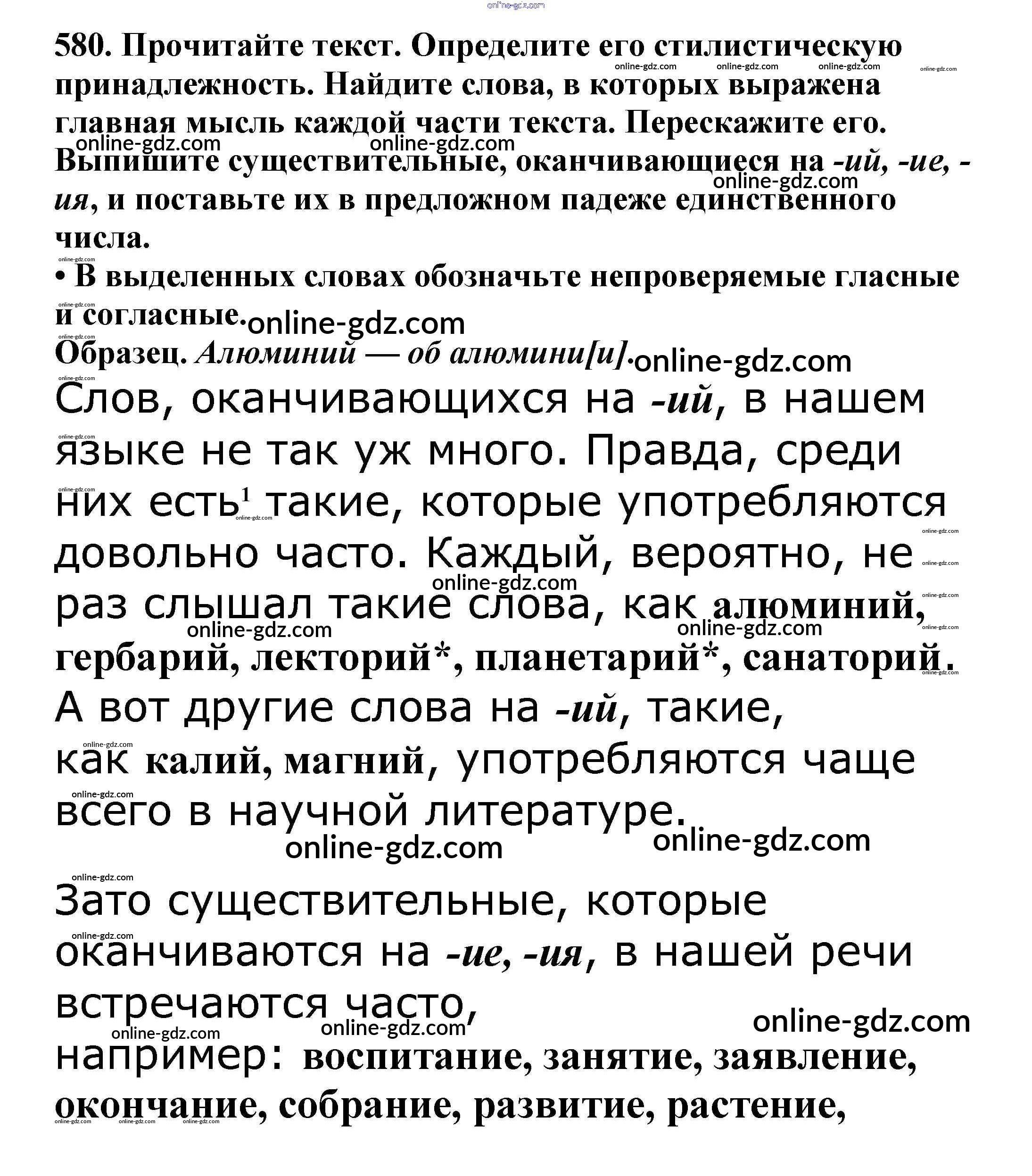 Готовые домашние задания по Русскому языку за 5 класс Учебник Баранов, Ладыженская 2016 - Часть 2. Упражнения 580