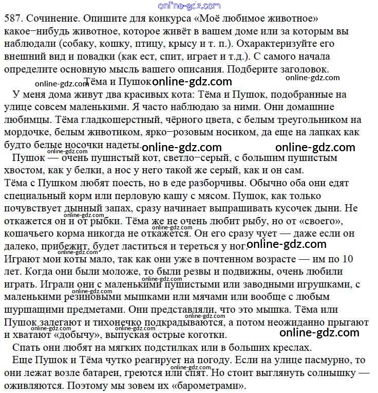 Готовые домашние задания по Русскому языку за 5 класс Учебник Баранов, Ладыженская 2016 - Часть 2. Упражнения 587