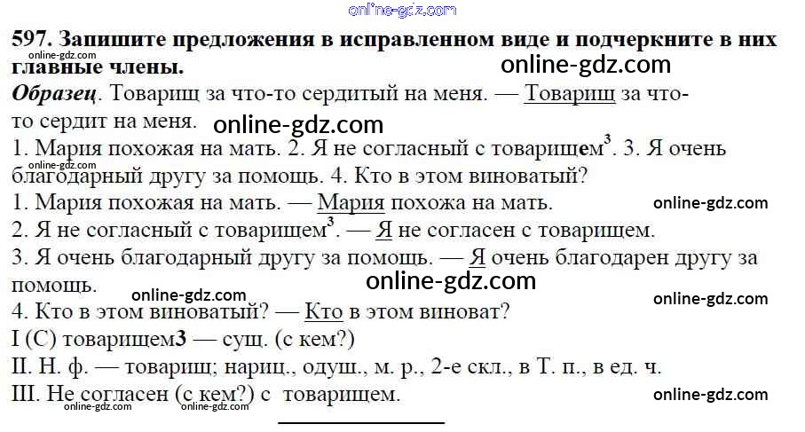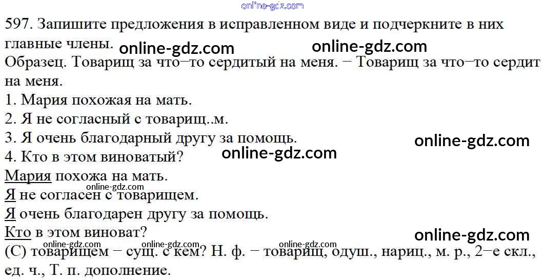 Готовые домашние задания по Русскому языку за 5 класс Учебник Баранов, Ладыженская 2016 - Часть 2. Упражнения 597