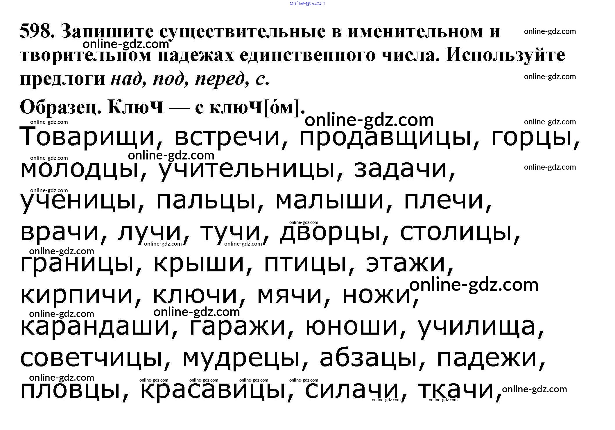 Готовые домашние задания по Русскому языку за 5 класс Учебник Баранов, Ладыженская 2016 - Часть 2. Упражнения 598