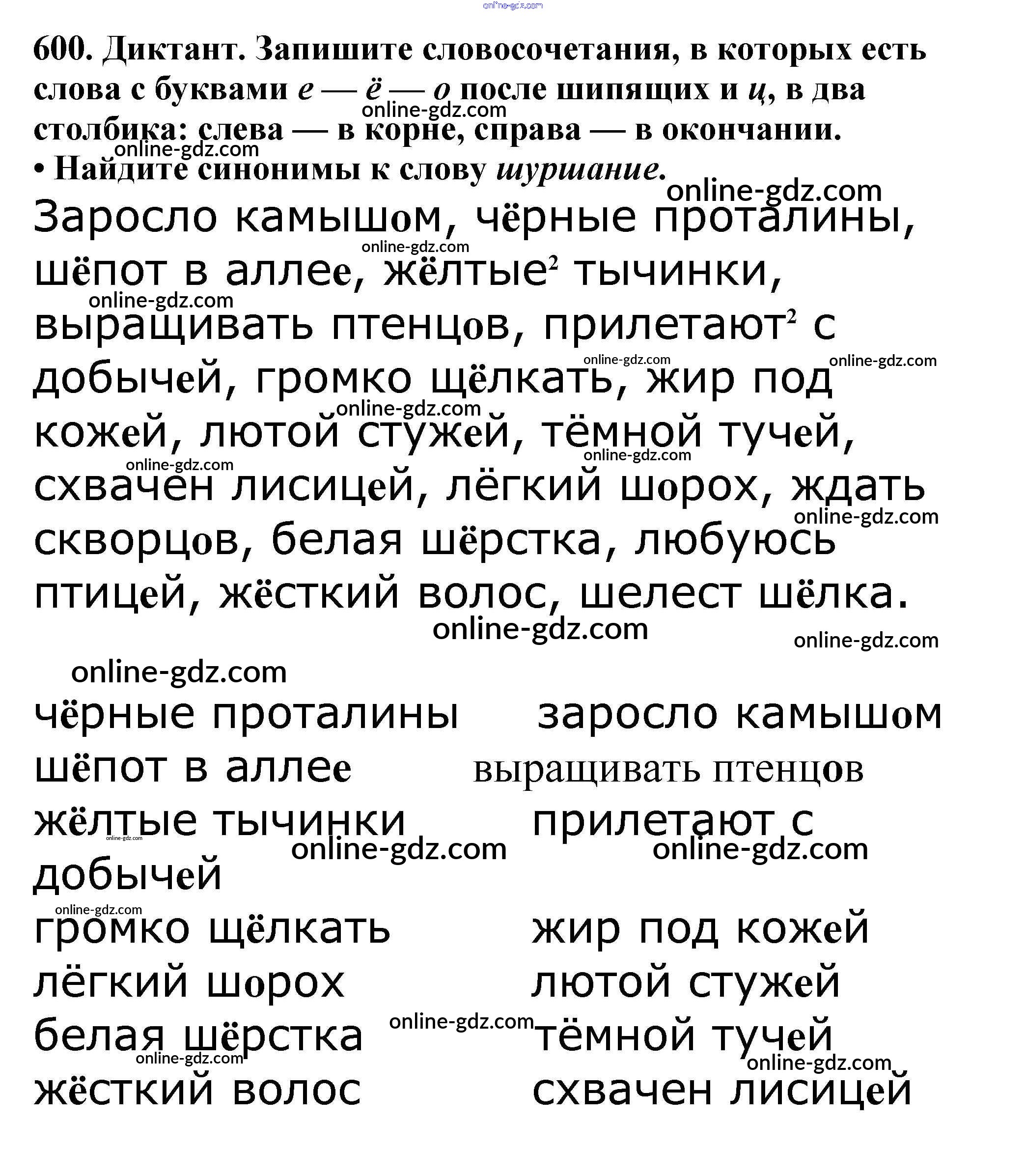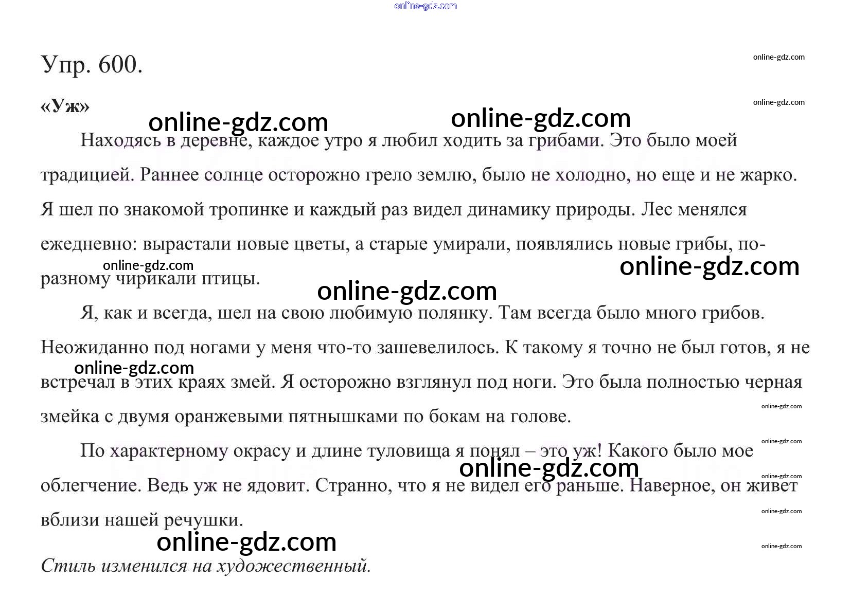Готовые домашние задания по Русскому языку за 5 класс Учебник Баранов, Ладыженская 2016 - Часть 2. Упражнения 600