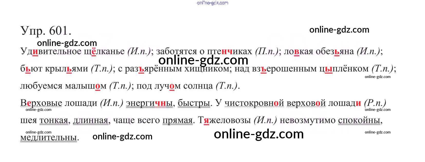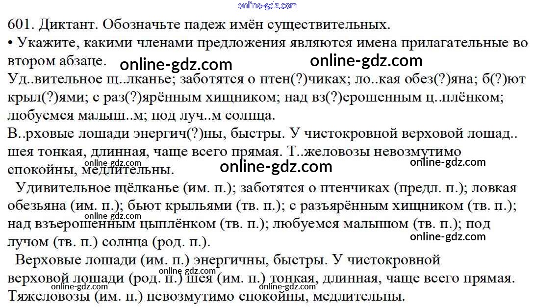 Готовые домашние задания по Русскому языку за 5 класс Учебник Баранов, Ладыженская 2016 - Часть 2. Упражнения 601
