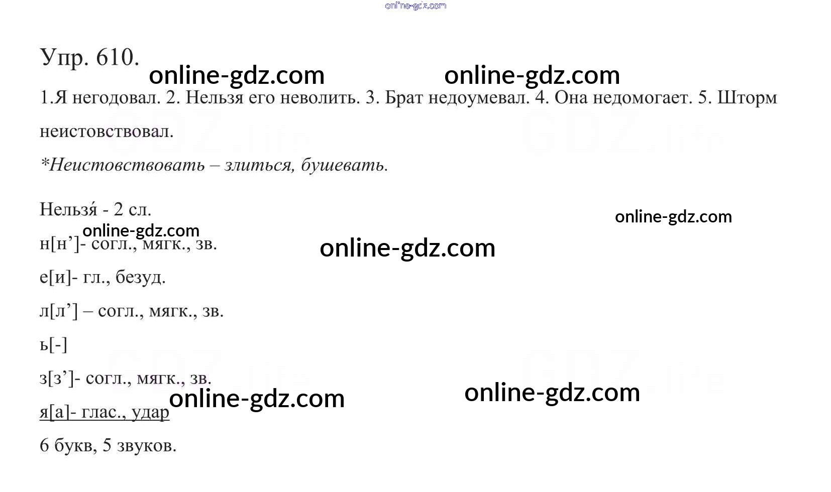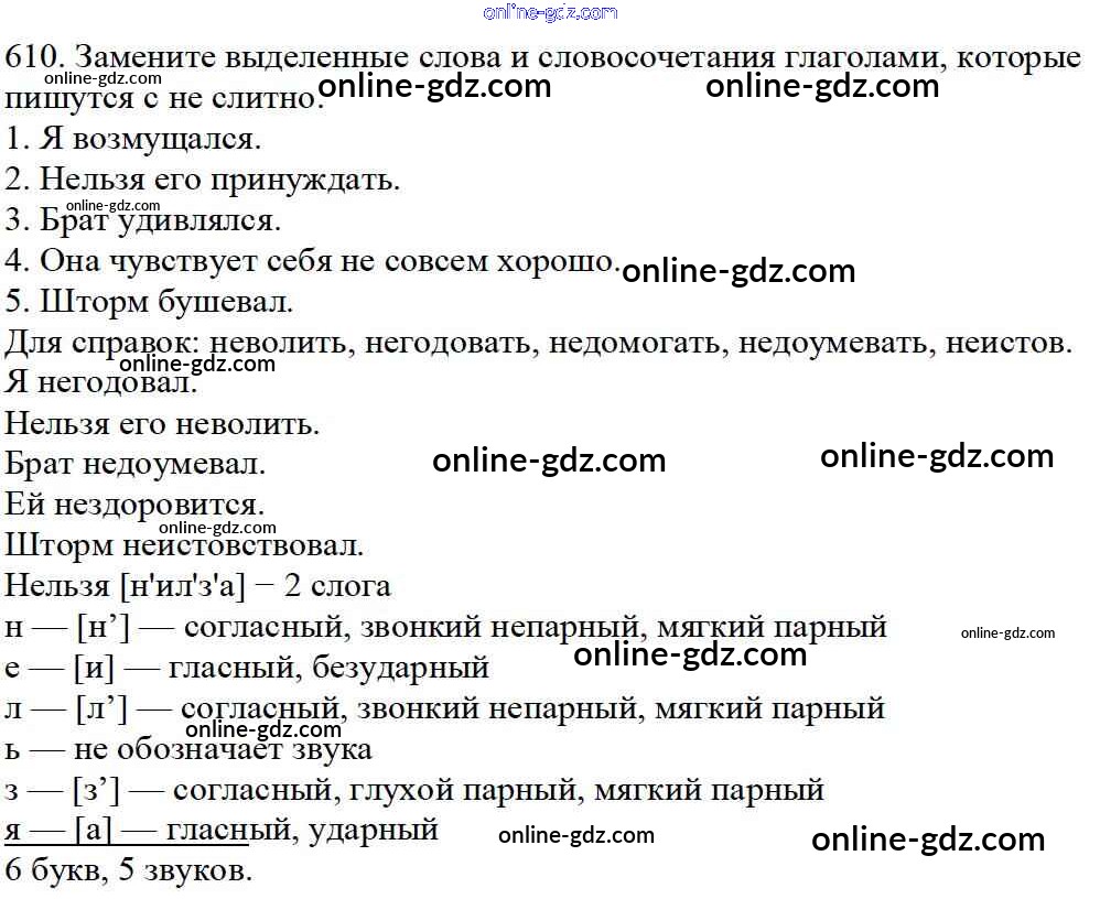 Готовые домашние задания по Русскому языку за 5 класс Учебник Баранов, Ладыженская 2016 - Часть 2. Упражнения 610