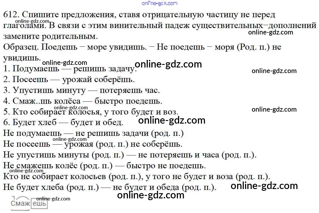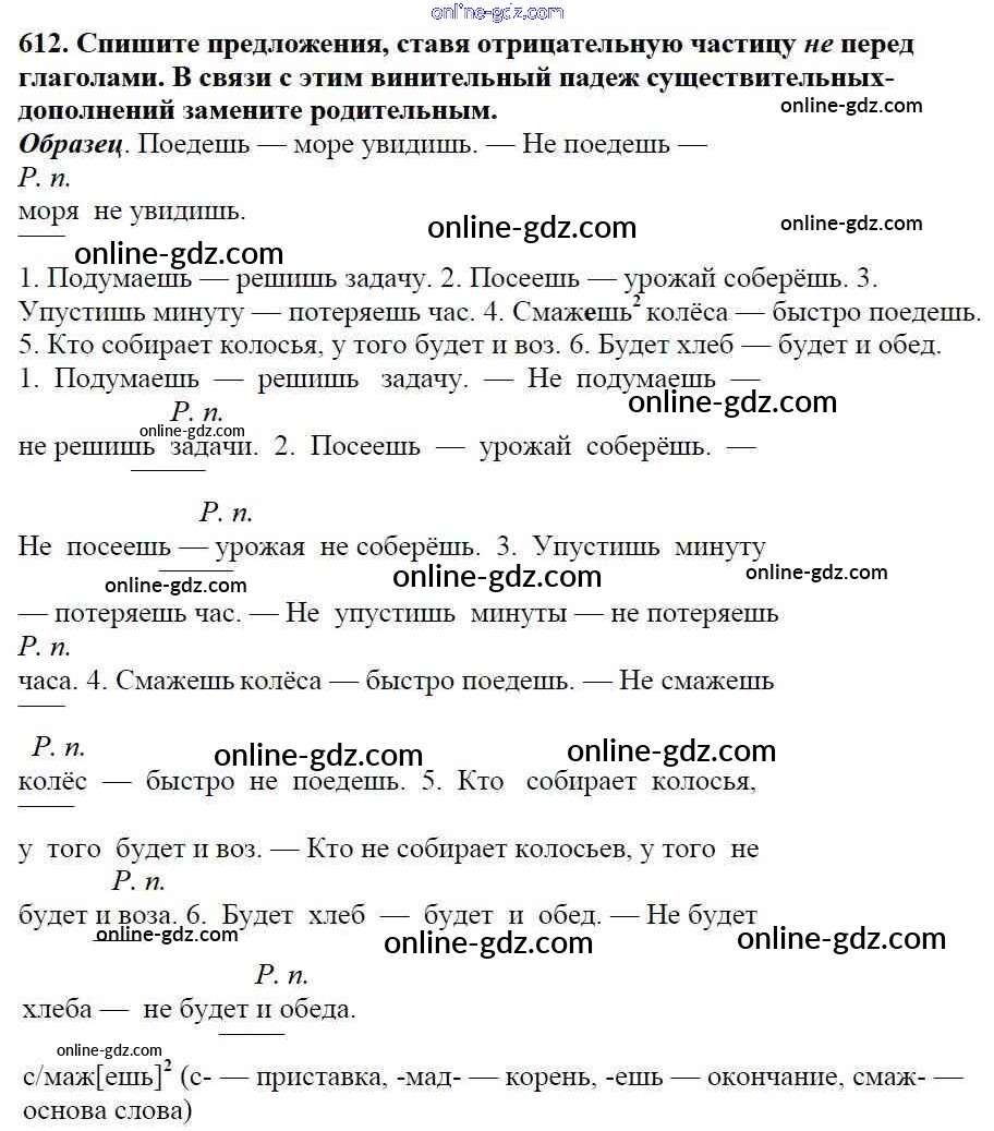 Готовые домашние задания по Русскому языку за 5 класс Учебник Баранов, Ладыженская 2016 - Часть 2. Упражнения 612