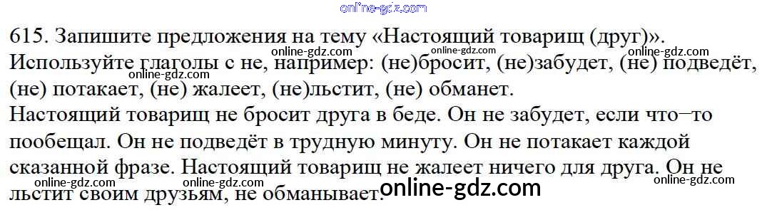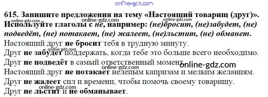 Готовые домашние задания по Русскому языку за 5 класс Учебник Баранов, Ладыженская 2016 - Часть 2. Упражнения 615