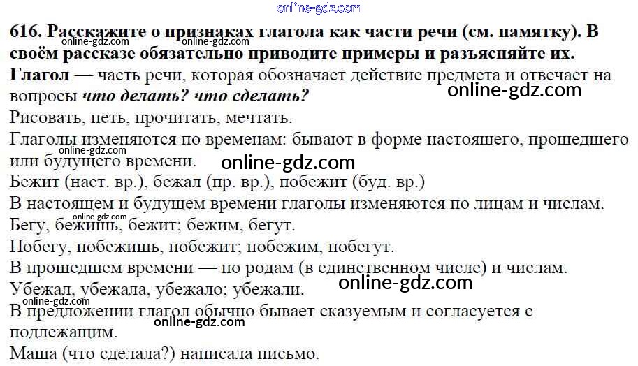 Готовые домашние задания по Русскому языку за 5 класс Учебник Баранов, Ладыженская 2016 - Часть 2. Упражнения 616