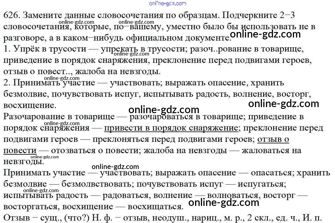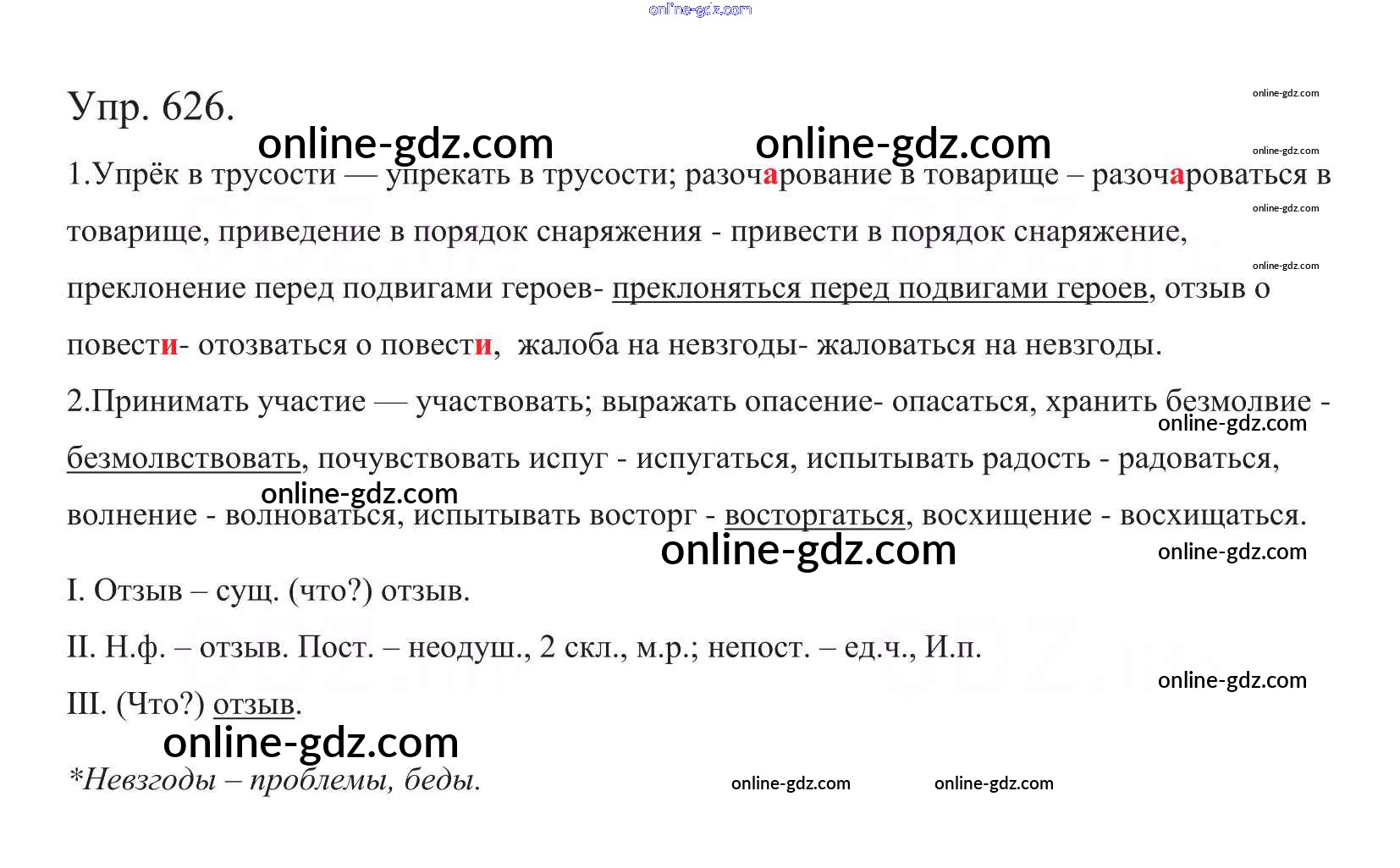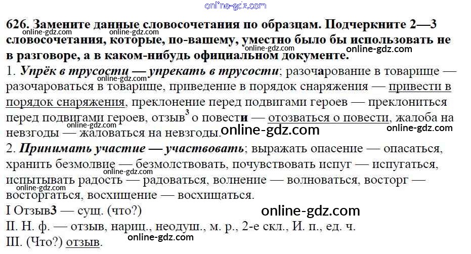 Готовые домашние задания по Русскому языку за 5 класс Учебник Баранов, Ладыженская 2016 - Часть 2. Упражнения 626