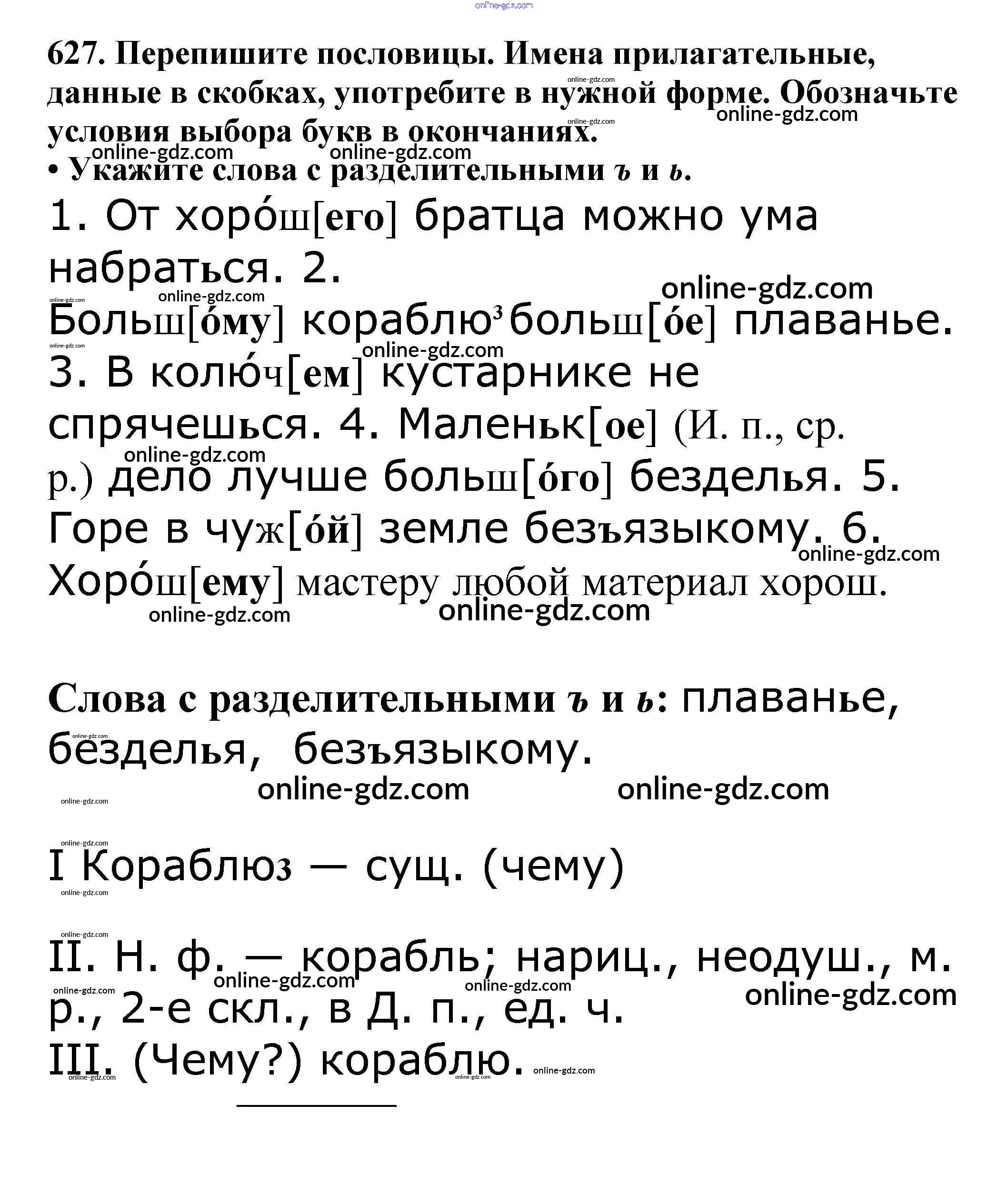 Готовые домашние задания по Русскому языку за 5 класс Учебник Баранов, Ладыженская 2016 - Часть 2. Упражнения 627