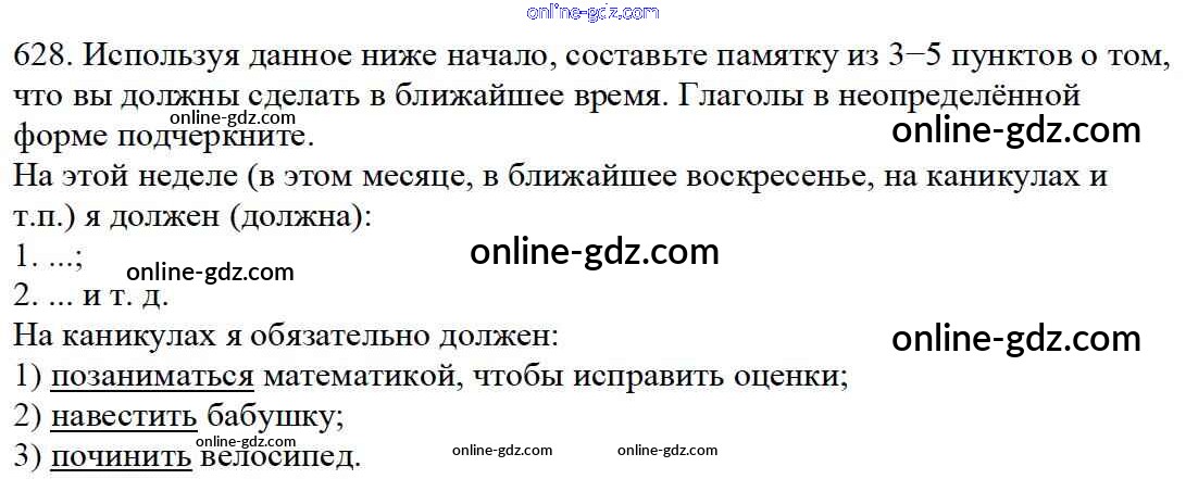Готовые домашние задания по Русскому языку за 5 класс Учебник Баранов, Ладыженская 2016 - Часть 2. Упражнения 628