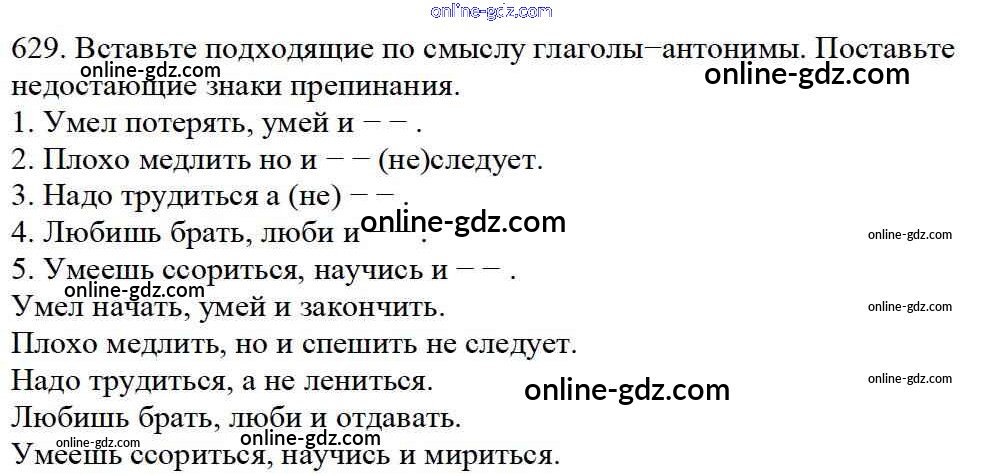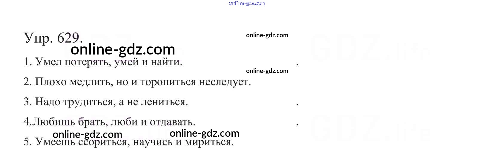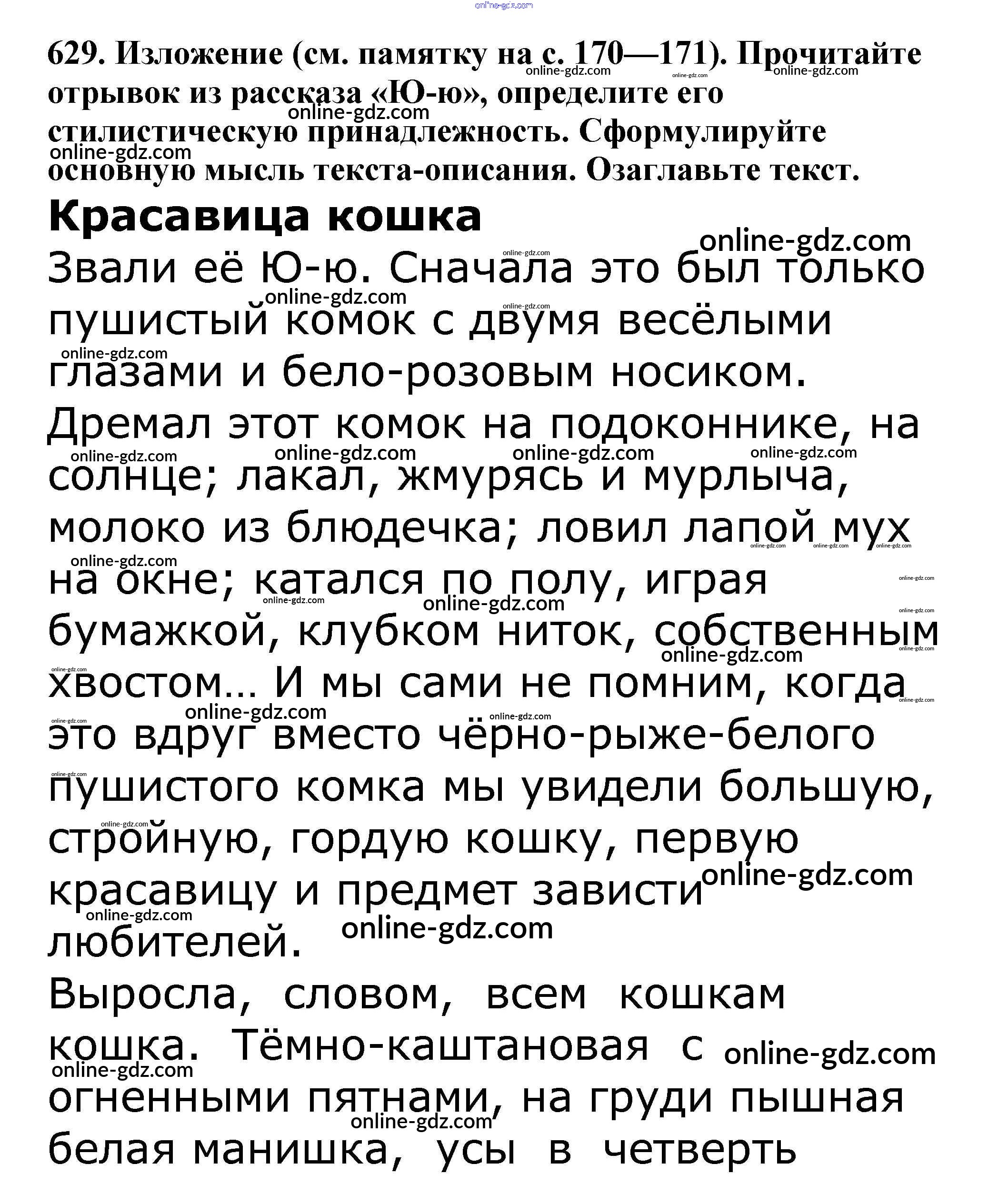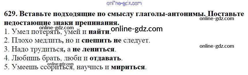 Готовые домашние задания по Русскому языку за 5 класс Учебник Баранов, Ладыженская 2016 - Часть 2. Упражнения 629