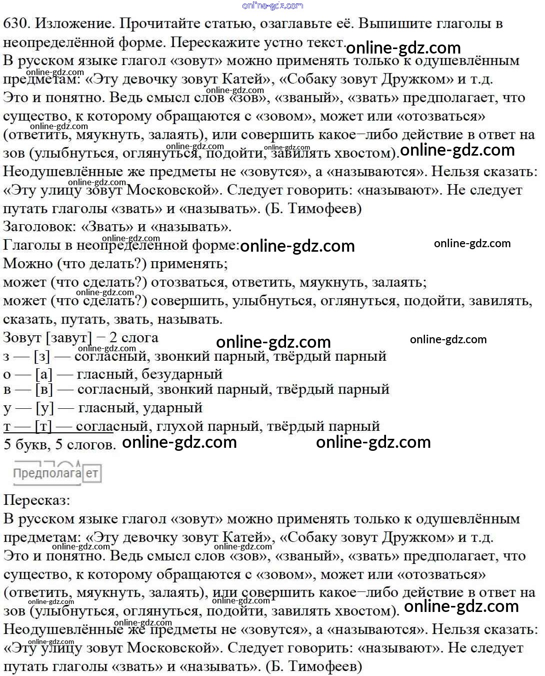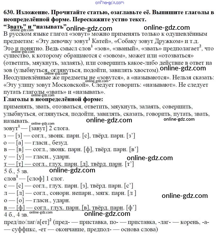 Готовые домашние задания по Русскому языку за 5 класс Учебник Баранов, Ладыженская 2016 - Часть 2. Упражнения 630