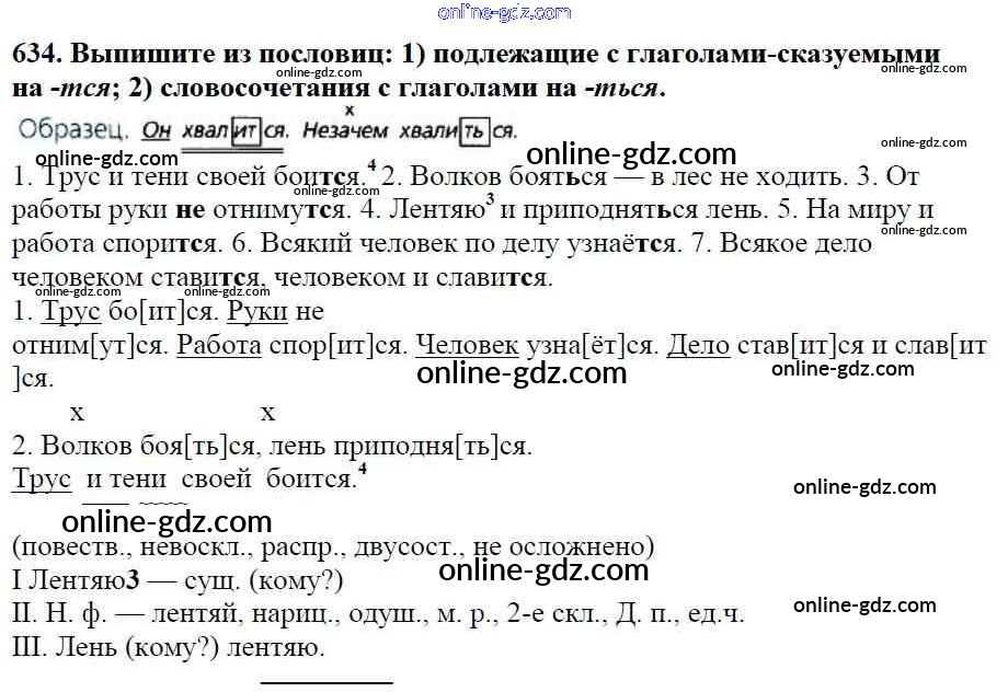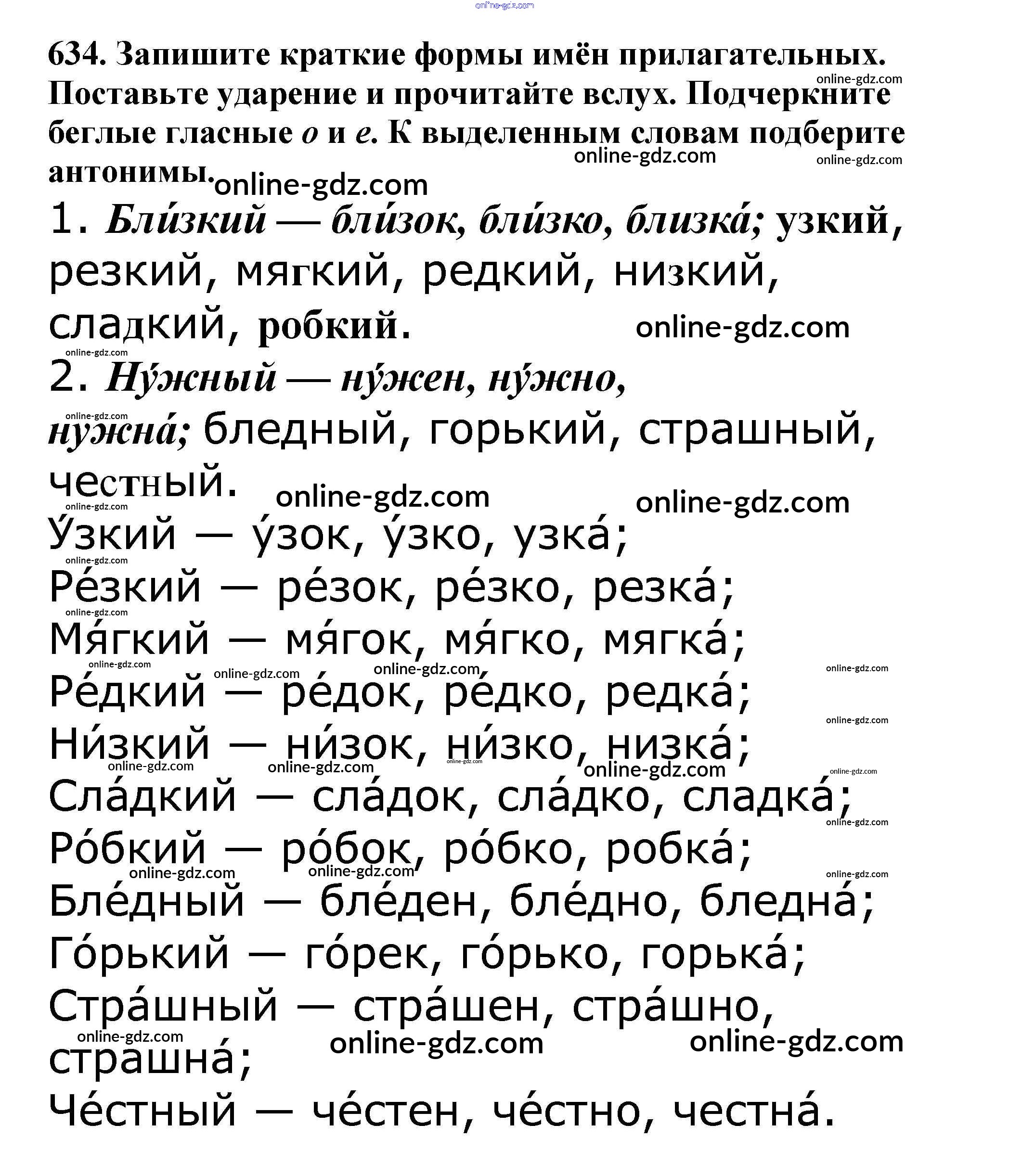 Готовые домашние задания по Русскому языку за 5 класс Учебник Баранов, Ладыженская 2016 - Часть 2. Упражнения 634
