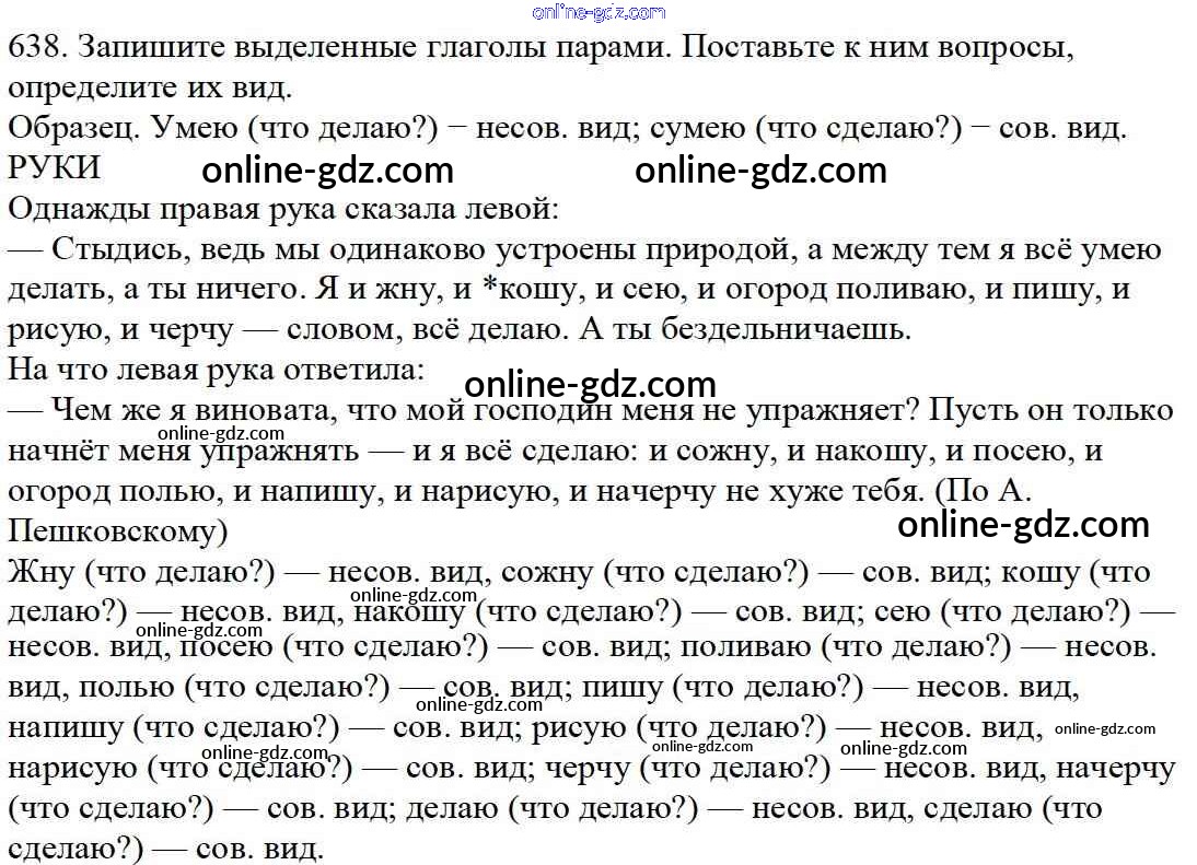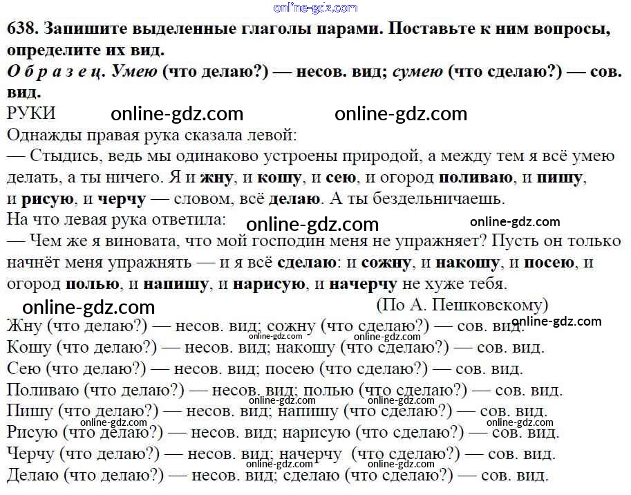 Готовые домашние задания по Русскому языку за 5 класс Учебник Баранов, Ладыженская 2016 - Часть 2. Упражнения 638