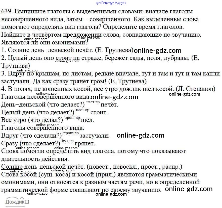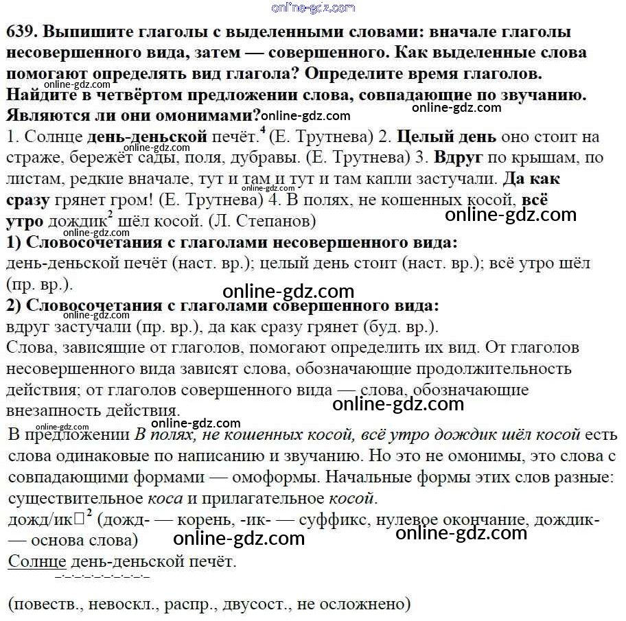 Готовые домашние задания по Русскому языку за 5 класс Учебник Баранов, Ладыженская 2016 - Часть 2. Упражнения 639