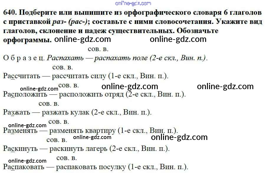 Готовые домашние задания по Русскому языку за 5 класс Учебник Баранов, Ладыженская 2016 - Часть 2. Упражнения 640