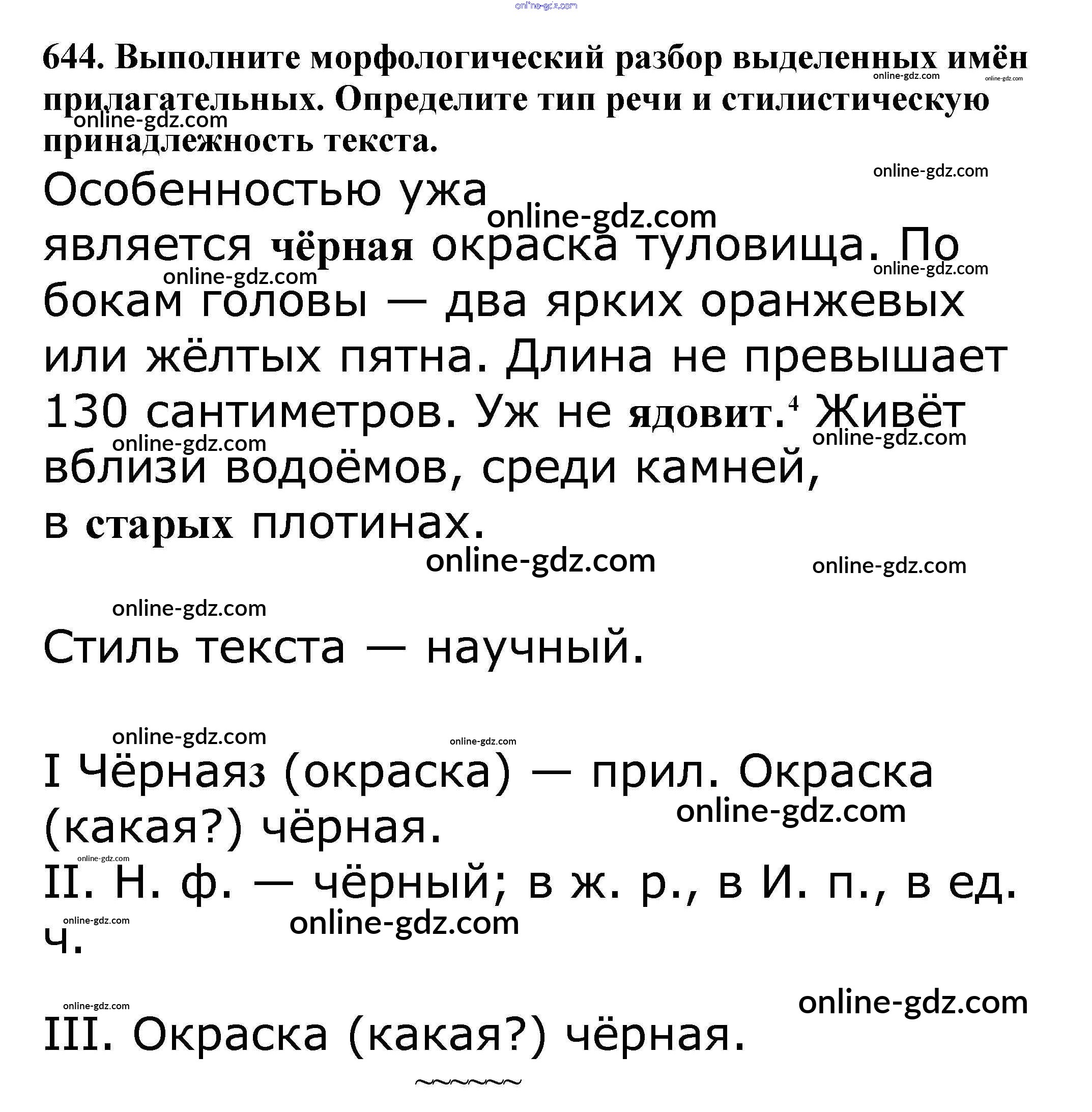 Готовые домашние задания по Русскому языку за 5 класс Учебник Баранов, Ладыженская 2016 - Часть 2. Упражнения 644