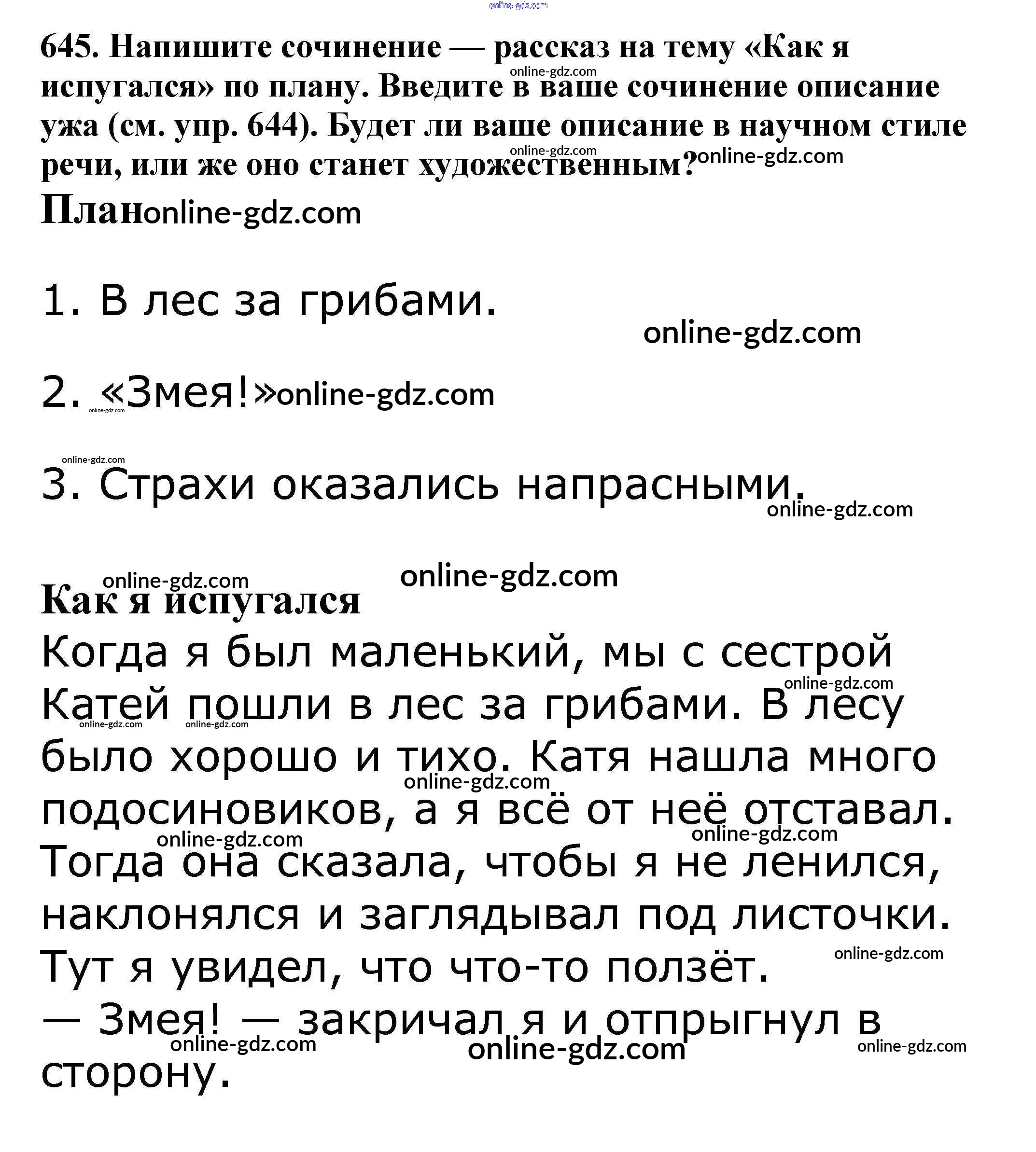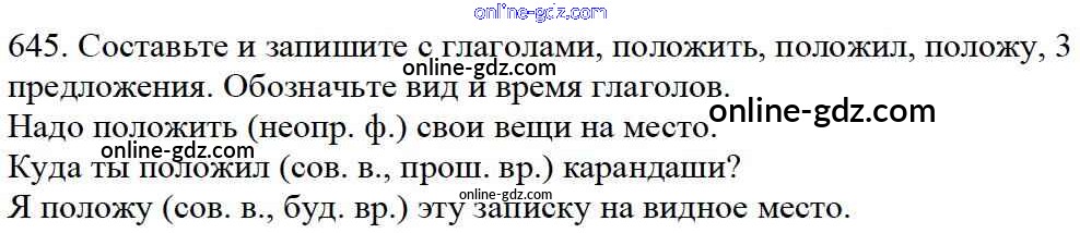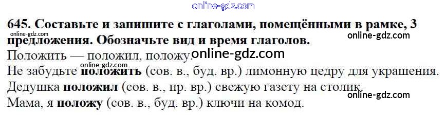 Готовые домашние задания по Русскому языку за 5 класс Учебник Баранов, Ладыженская 2016 - Часть 2. Упражнения 645
