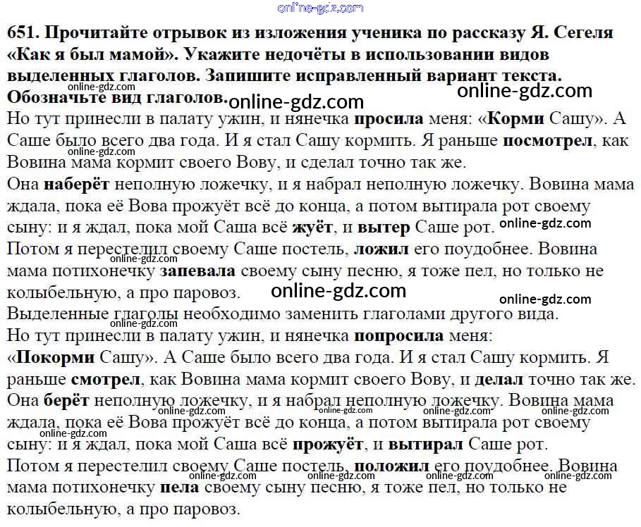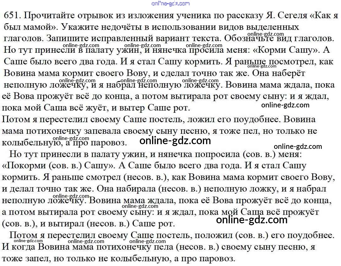 Готовые домашние задания по Русскому языку за 5 класс Учебник Баранов, Ладыженская 2016 - Часть 2. Упражнения 651