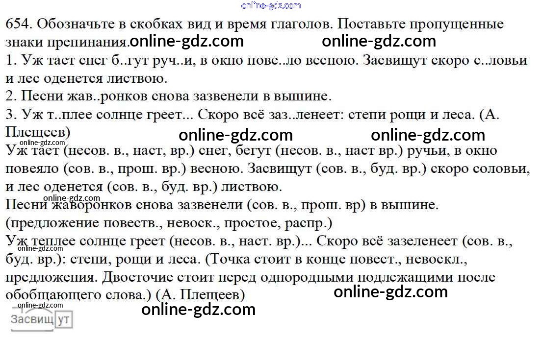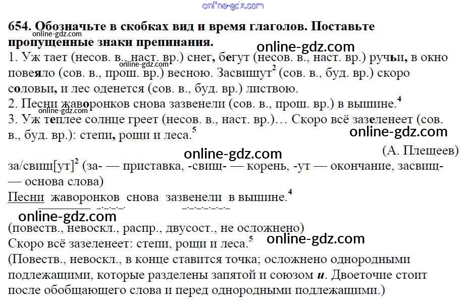Готовые домашние задания по Русскому языку за 5 класс Учебник Баранов, Ладыженская 2016 - Часть 2. Упражнения 654