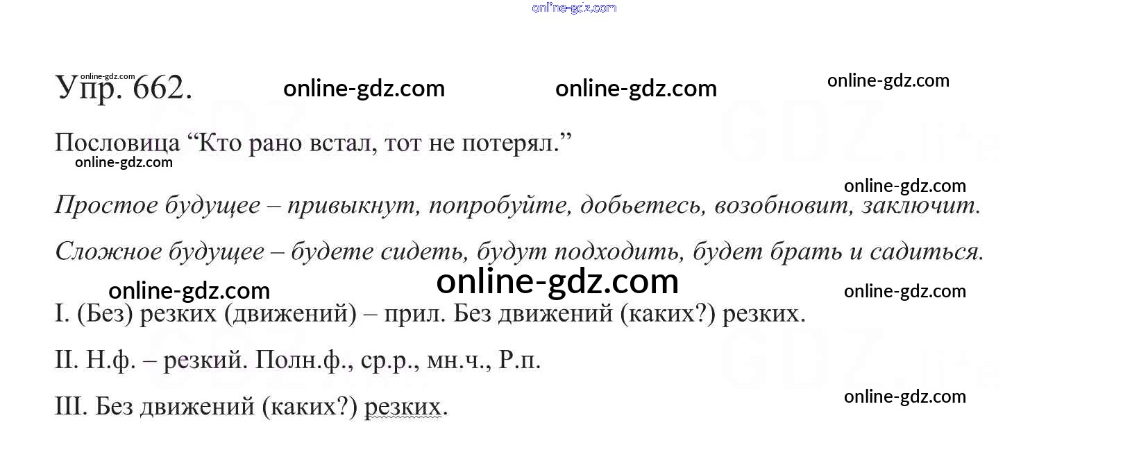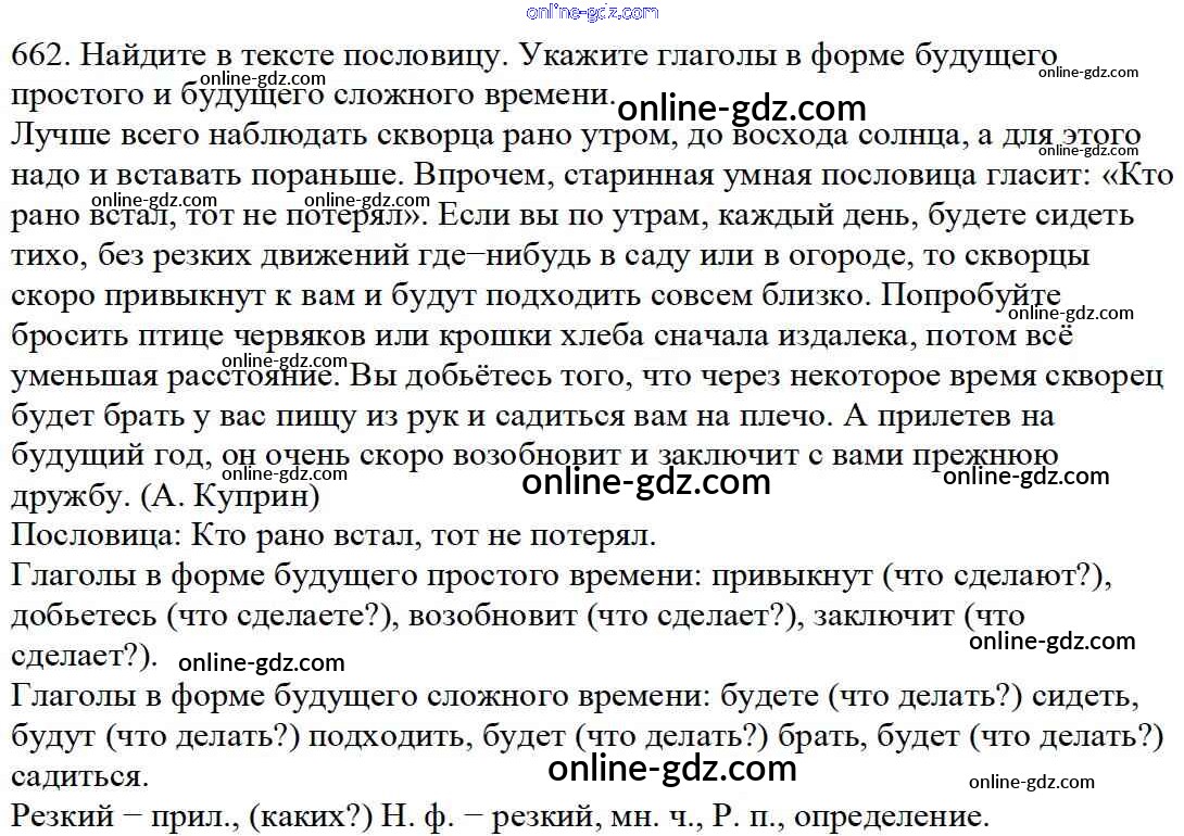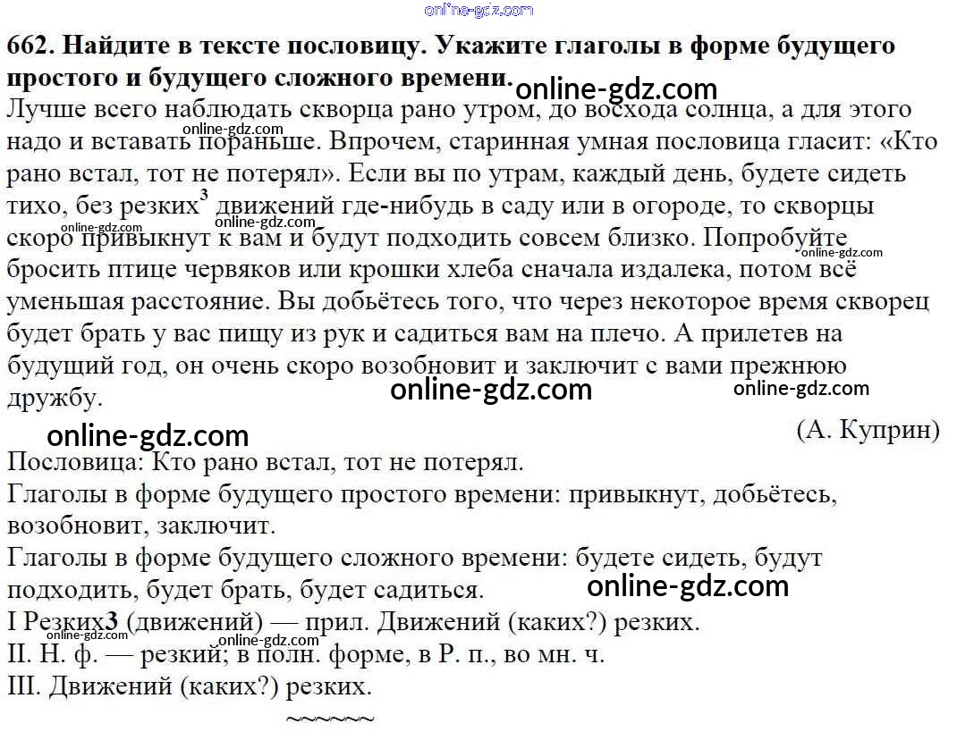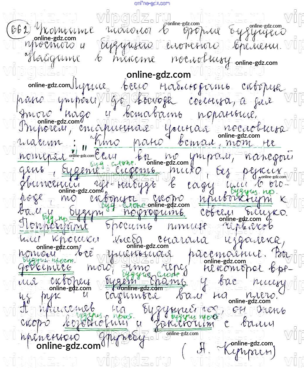 Готовые домашние задания по Русскому языку за 5 класс Учебник Баранов, Ладыженская 2016 - Часть 2. Упражнения 662