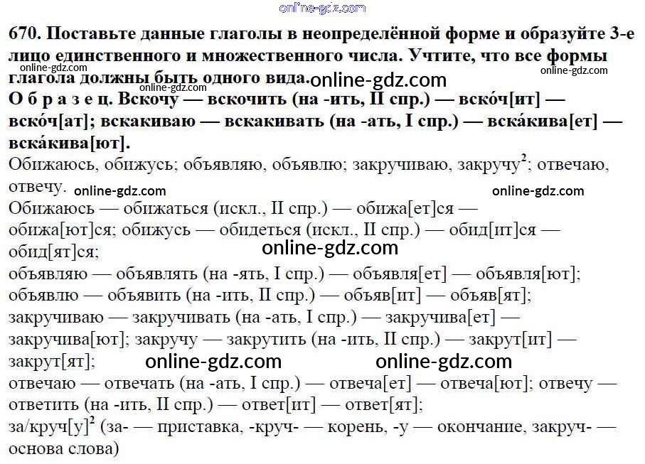 Готовые домашние задания по Русскому языку за 5 класс Учебник Баранов, Ладыженская 2016 - Часть 2. Упражнения 670