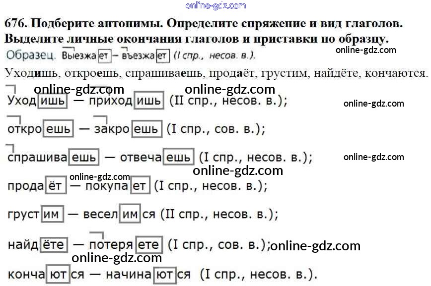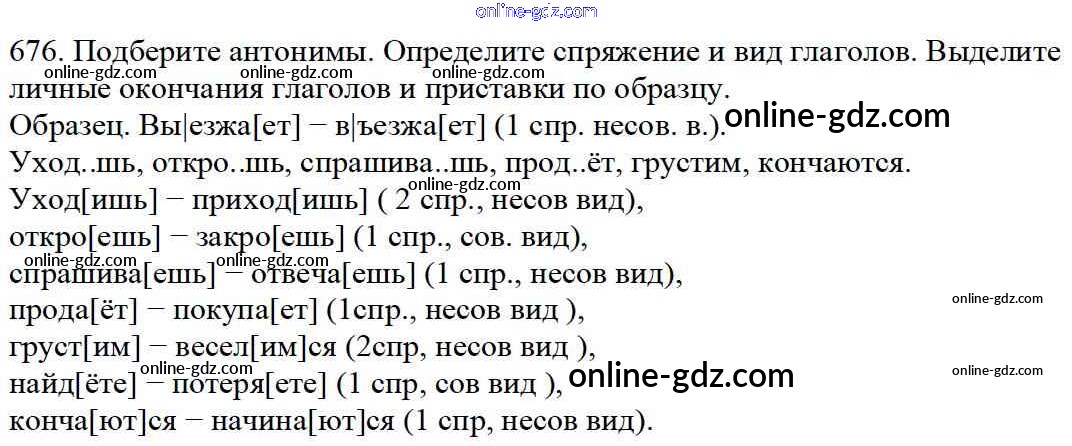 Готовые домашние задания по Русскому языку за 5 класс Учебник Баранов, Ладыженская 2016 - Часть 2. Упражнения 676