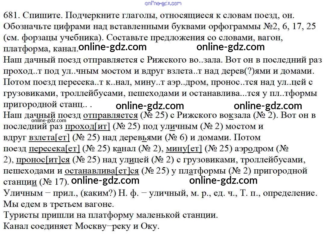Готовые домашние задания по Русскому языку за 5 класс Учебник Баранов, Ладыженская 2016 - Часть 2. Упражнения 681