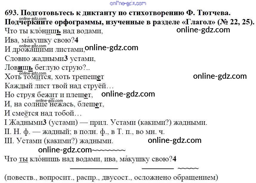 Готовые домашние задания по Русскому языку за 5 класс Учебник Баранов, Ладыженская 2016 - Часть 2. Упражнения 693