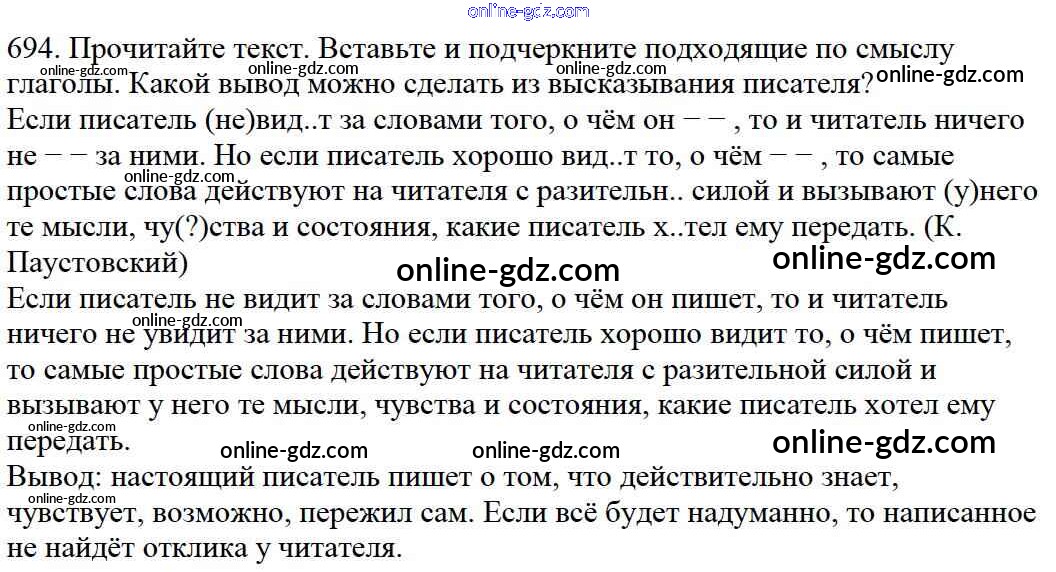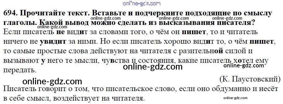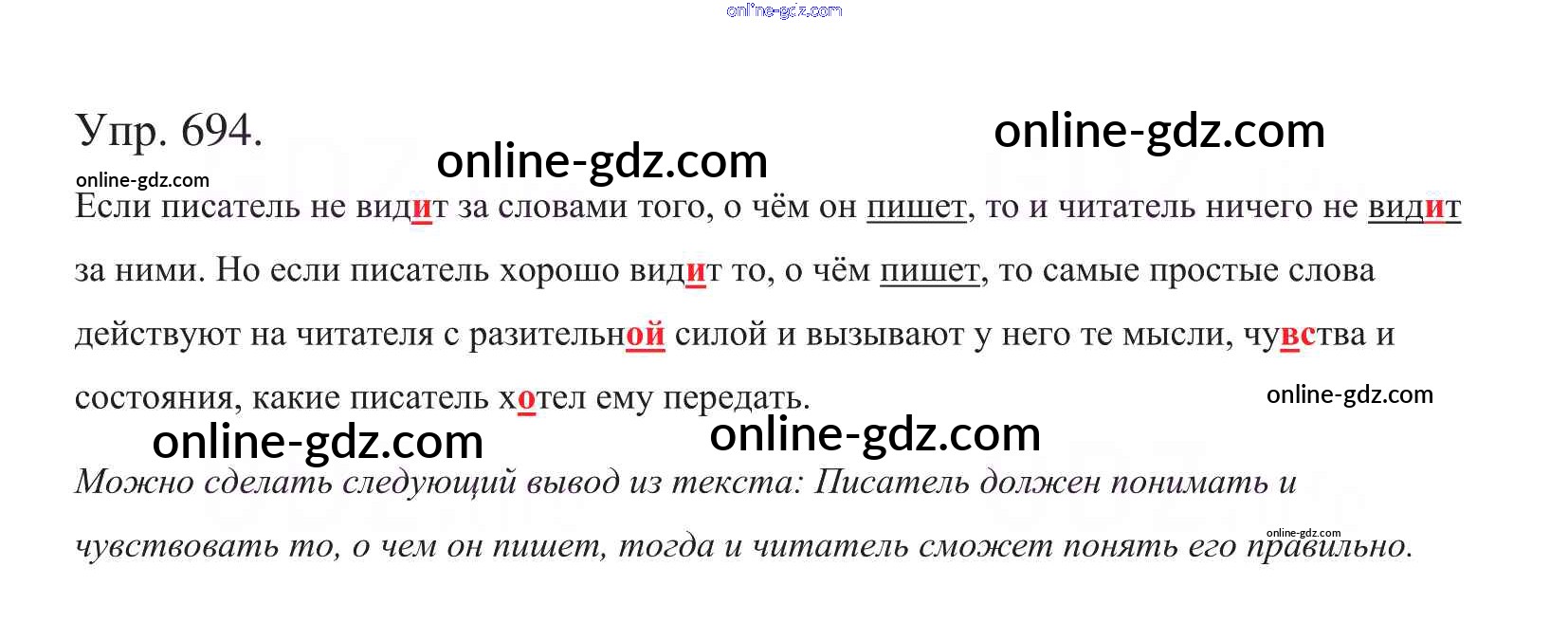 Готовые домашние задания по Русскому языку за 5 класс Учебник Баранов, Ладыженская 2016 - Часть 2. Упражнения 694