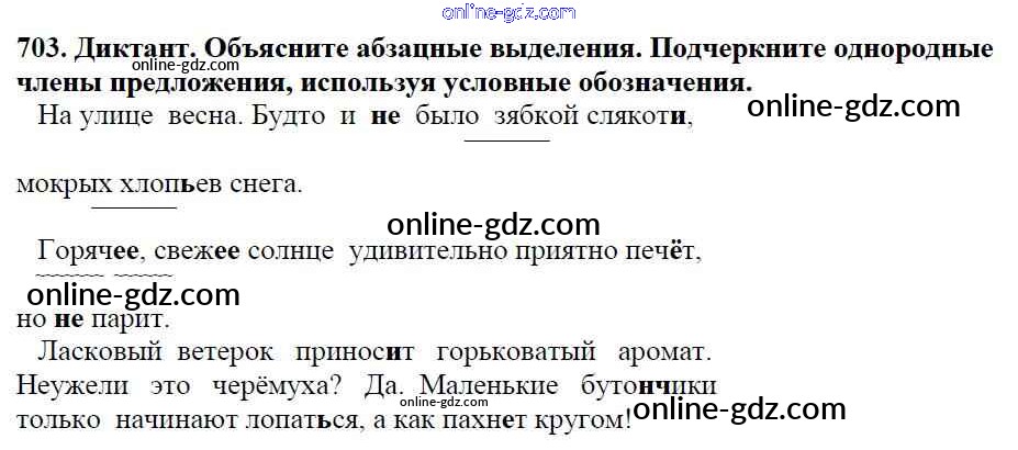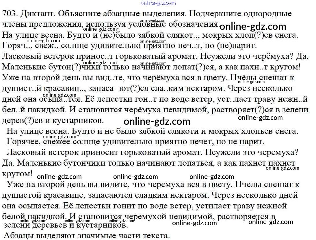 Готовые домашние задания по Русскому языку за 5 класс Учебник Баранов, Ладыженская 2016 - Часть 2. Упражнения 703