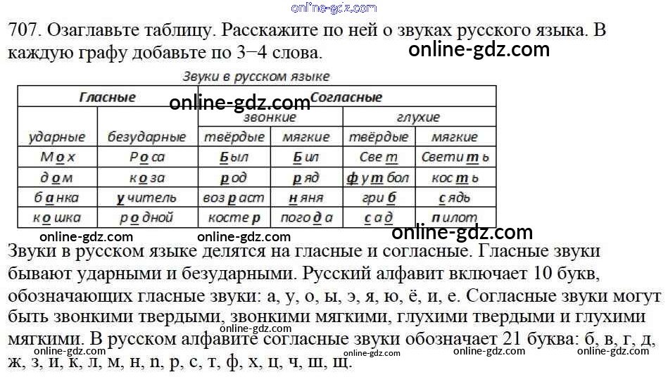 Готовые домашние задания по Русскому языку за 5 класс Учебник Баранов, Ладыженская 2016 - Часть 2. Упражнения 707