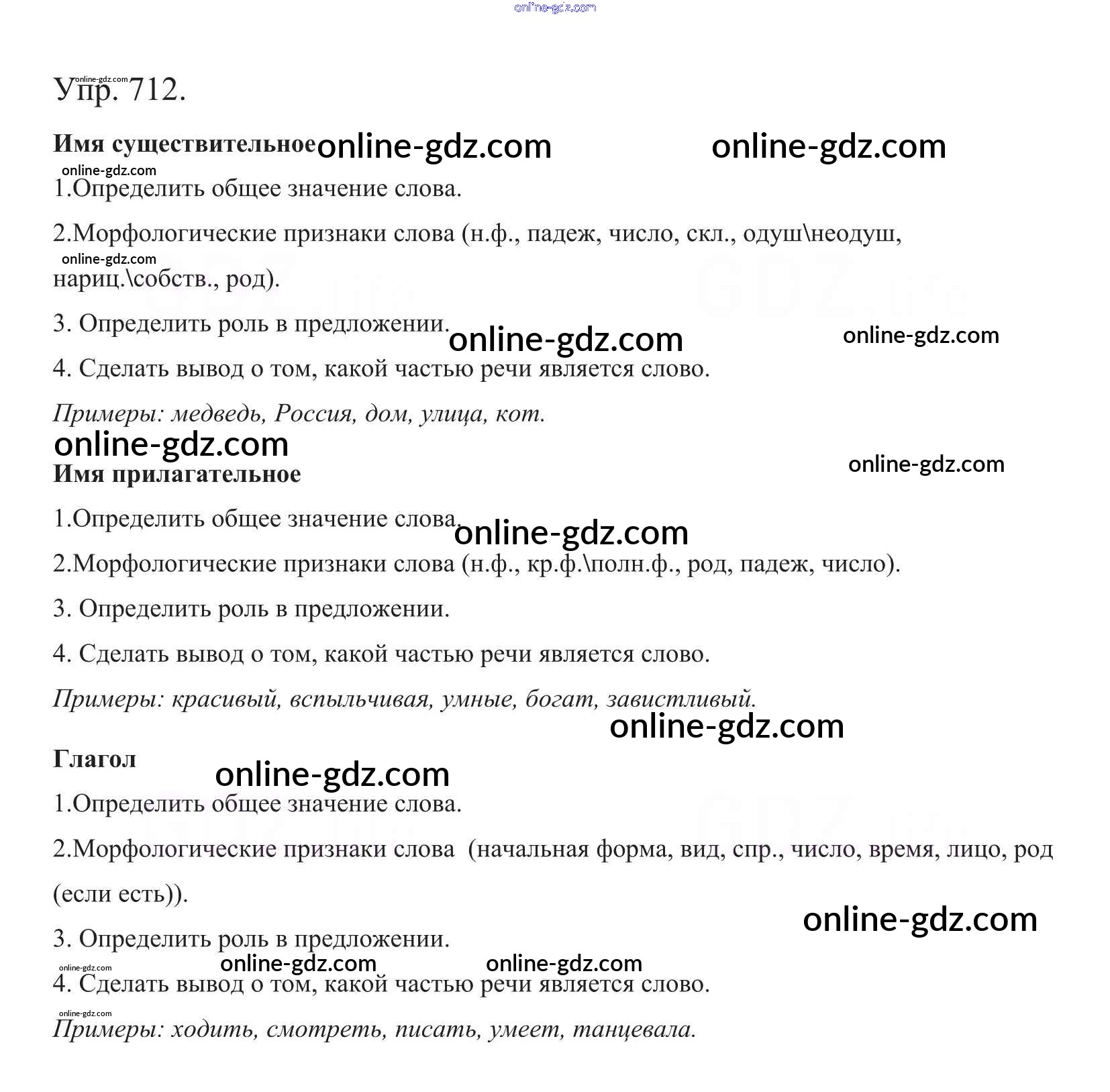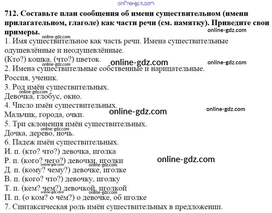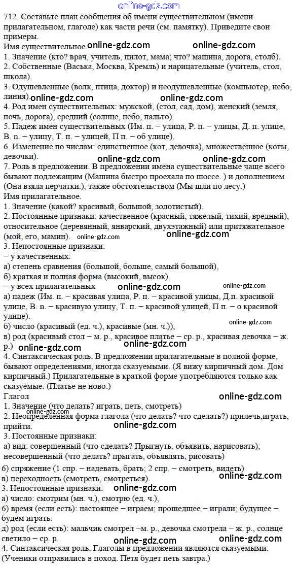 Готовые домашние задания по Русскому языку за 5 класс Учебник Баранов, Ладыженская 2016 - Часть 2. Упражнения 712